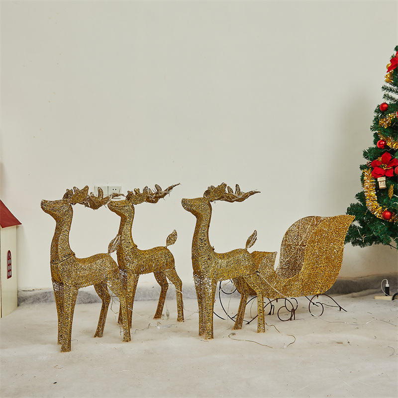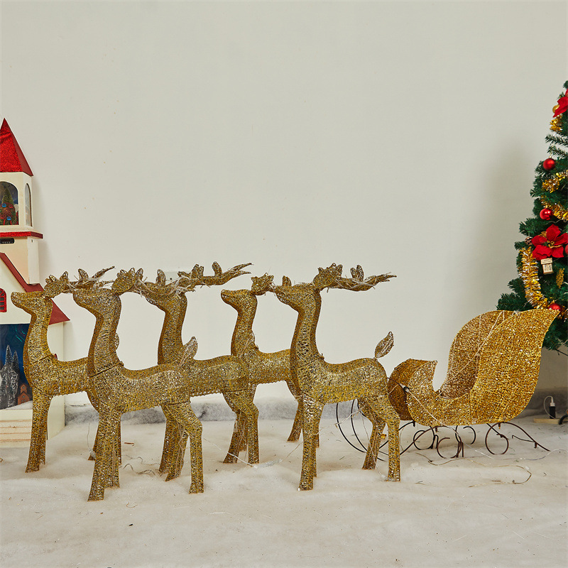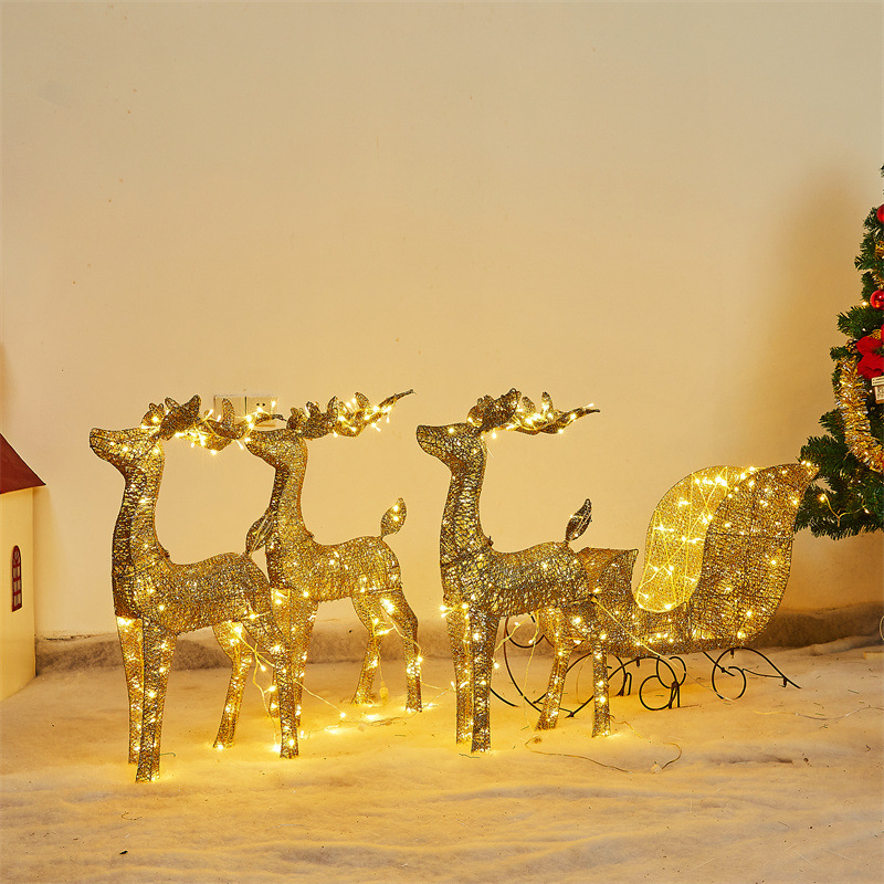 クリスマス発光鹿拉車ホテルデパート大型シーン鉄芸クリスマス鹿クリスマス装飾シーン配置