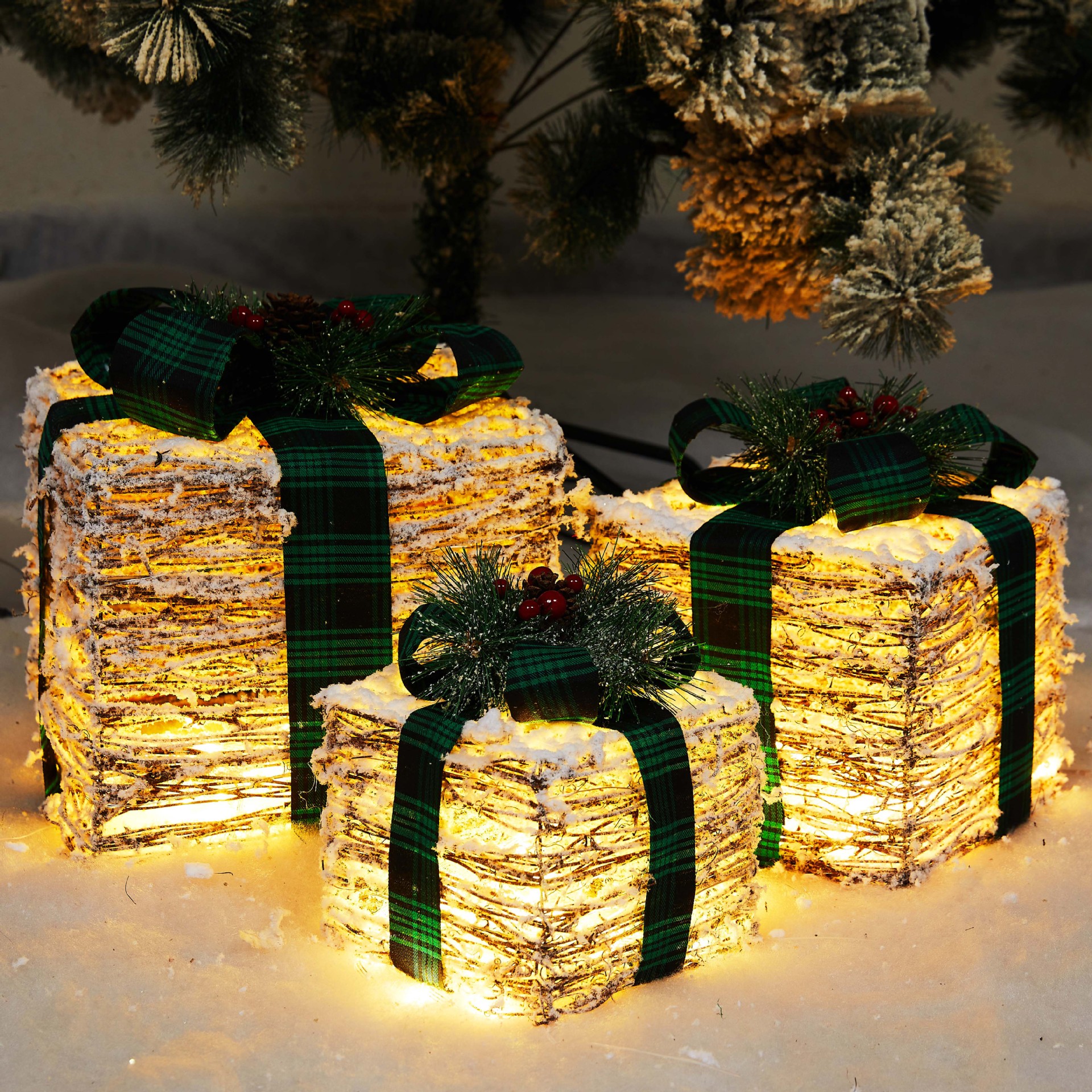 クリスマス装飾箱発光三点セットの鉄芸クリスマスの新しい国境を越えて装飾品の植毛プレゼント箱卸売りを提供する