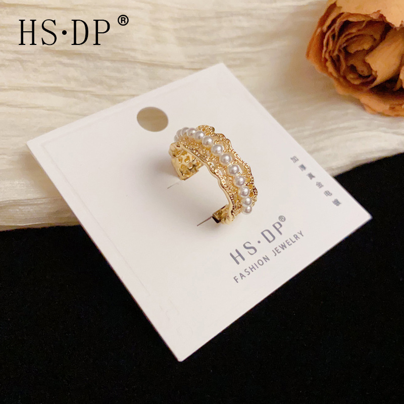 小众个性金属蕾丝花边珍珠开口戒气质时尚简约独特设计感指环批发