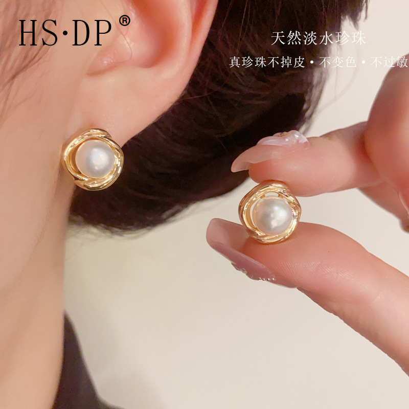 s925 シルバー針ファッションシンプルな不規則な金属淡水真珠のイヤリングライト高級優しくエレガントな多用途イヤリング女性のための