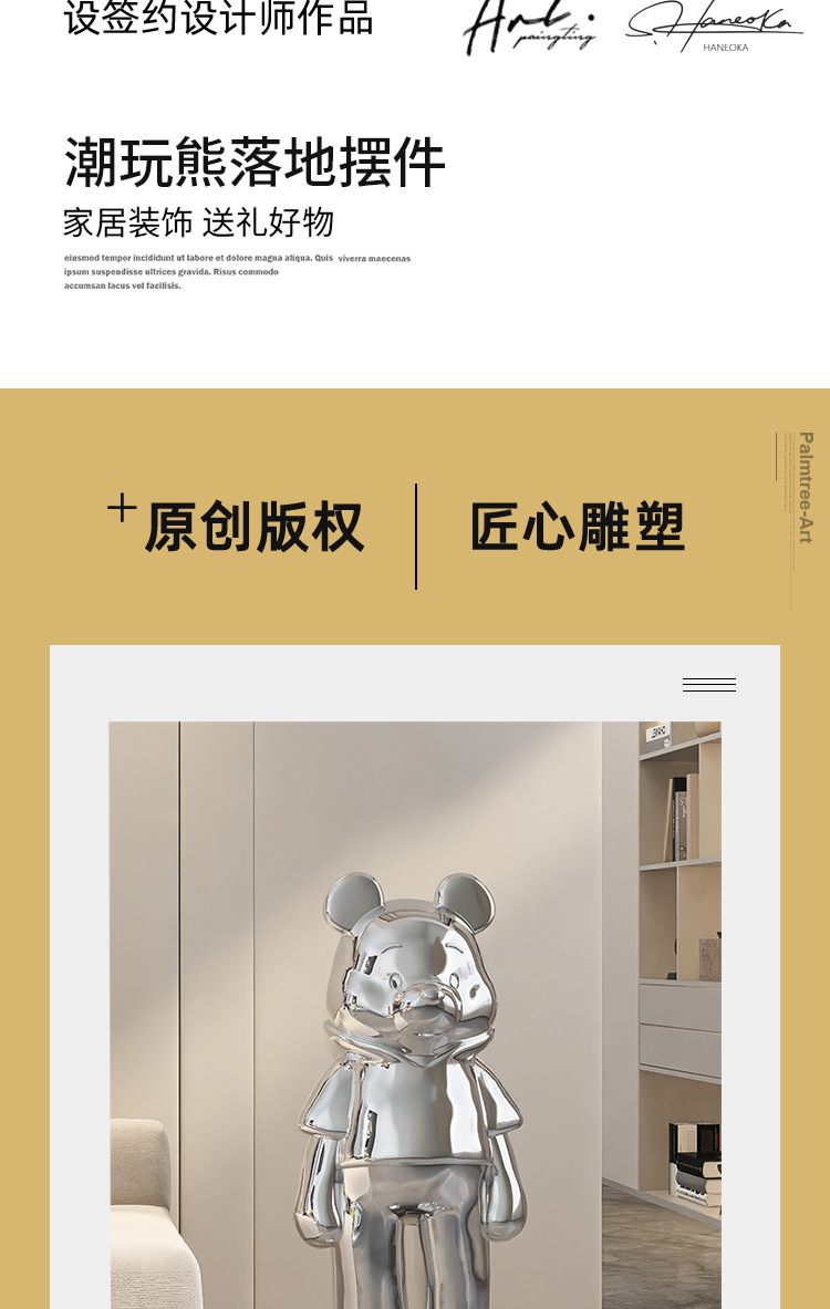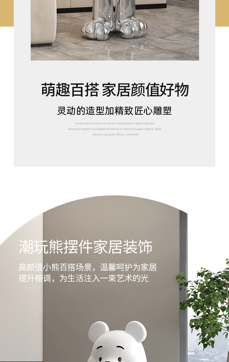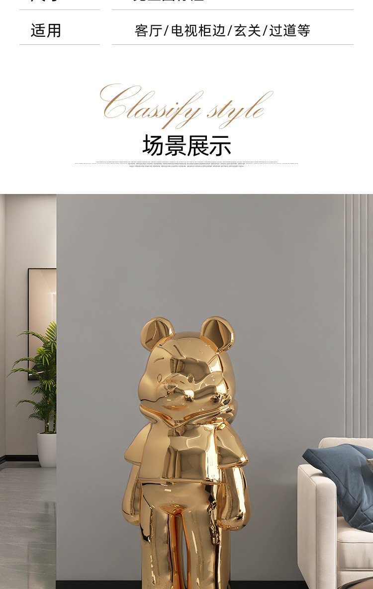 電気メッキされたクマの置物、リビングルーム用大型フロアスタンド、ネットで話題の装飾品、新築祝いギフト、テレビ台の横に置く、軽やかな高級感