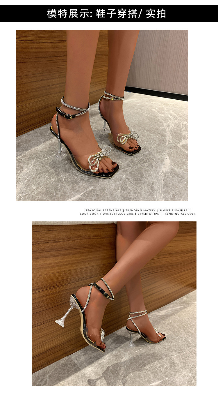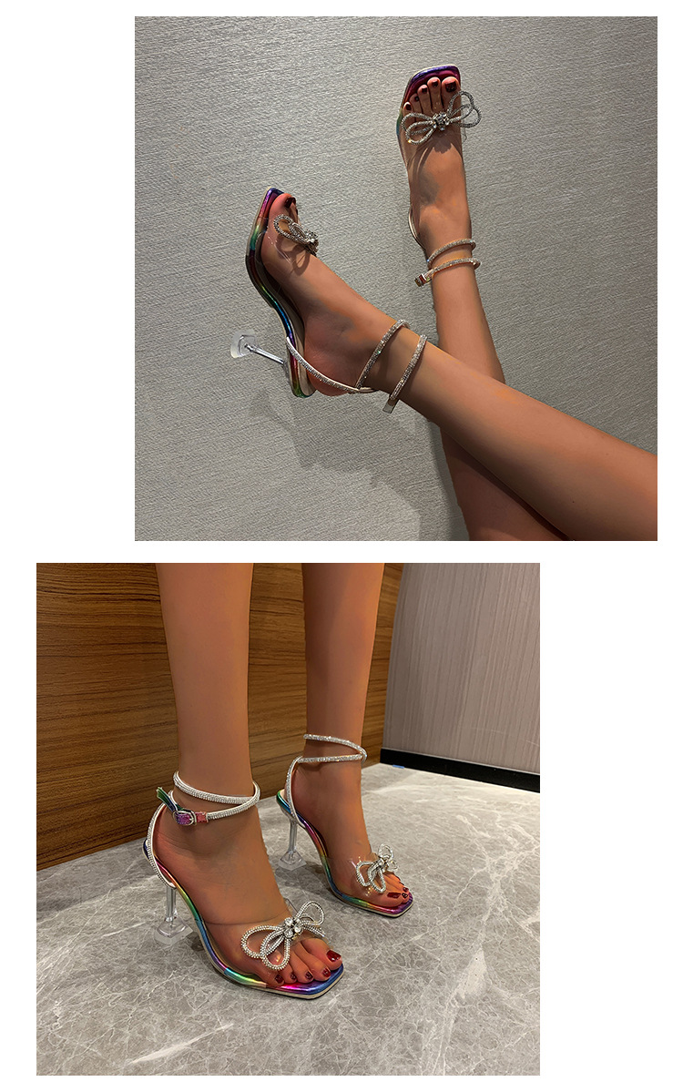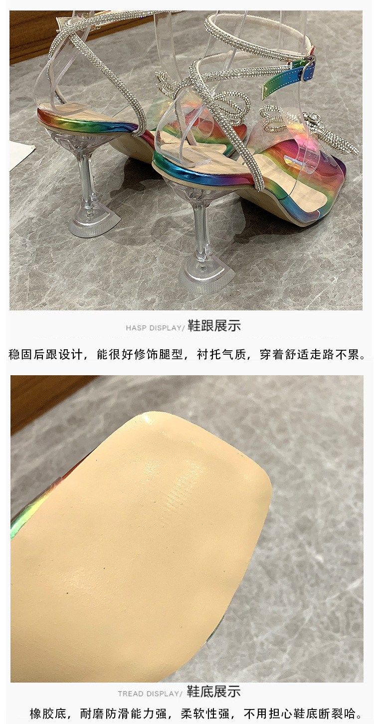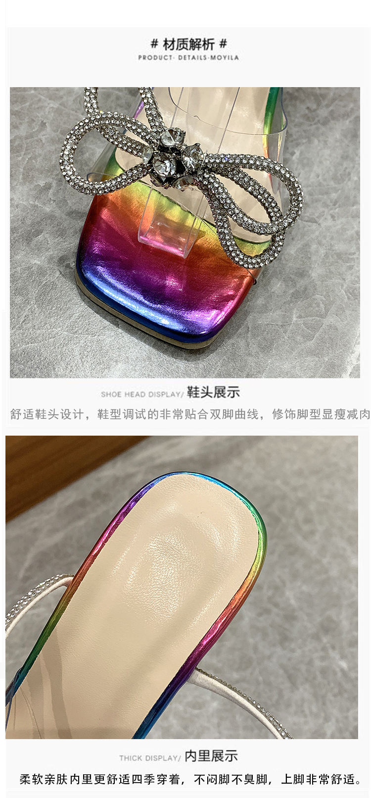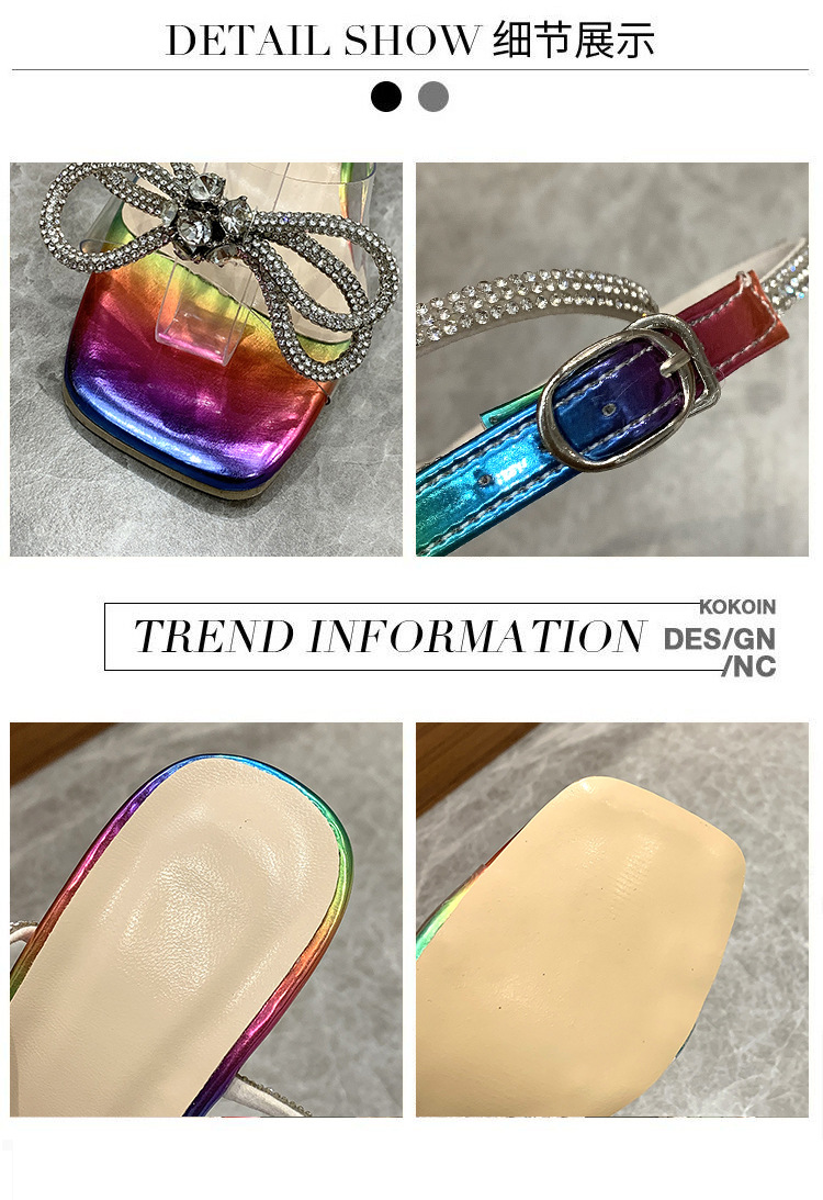 欧米の対外貿易の蝶結びのドリルのハイヒールのサンダルの女性の越境する大きいサイズの方頭はショーのファッションの冷たいスリッパのheelsを歩きます。