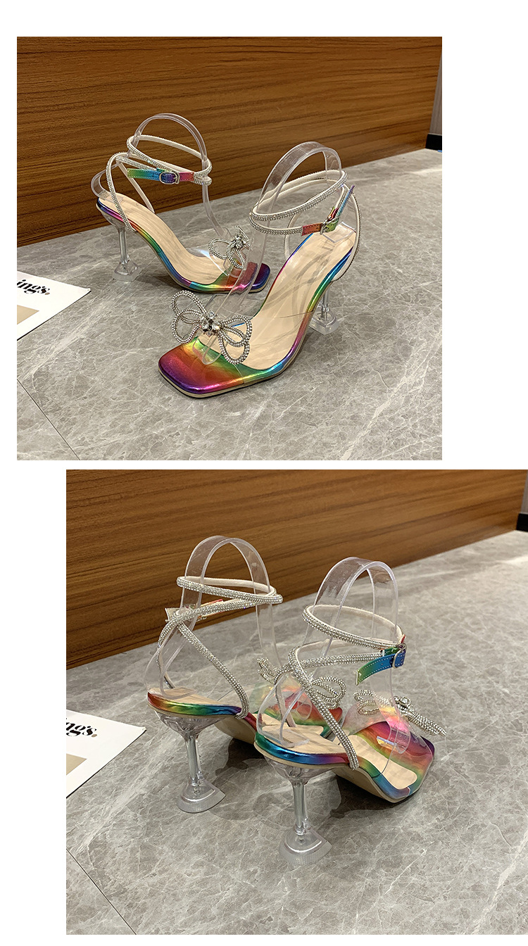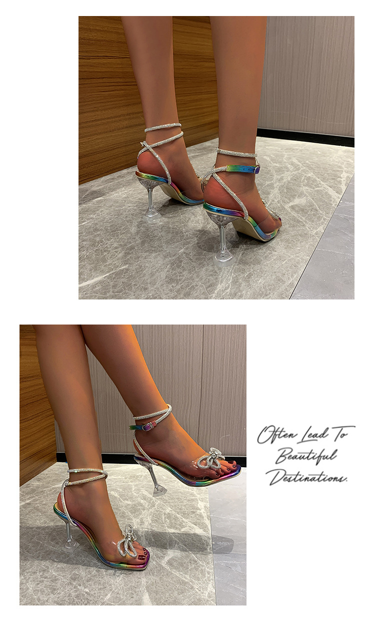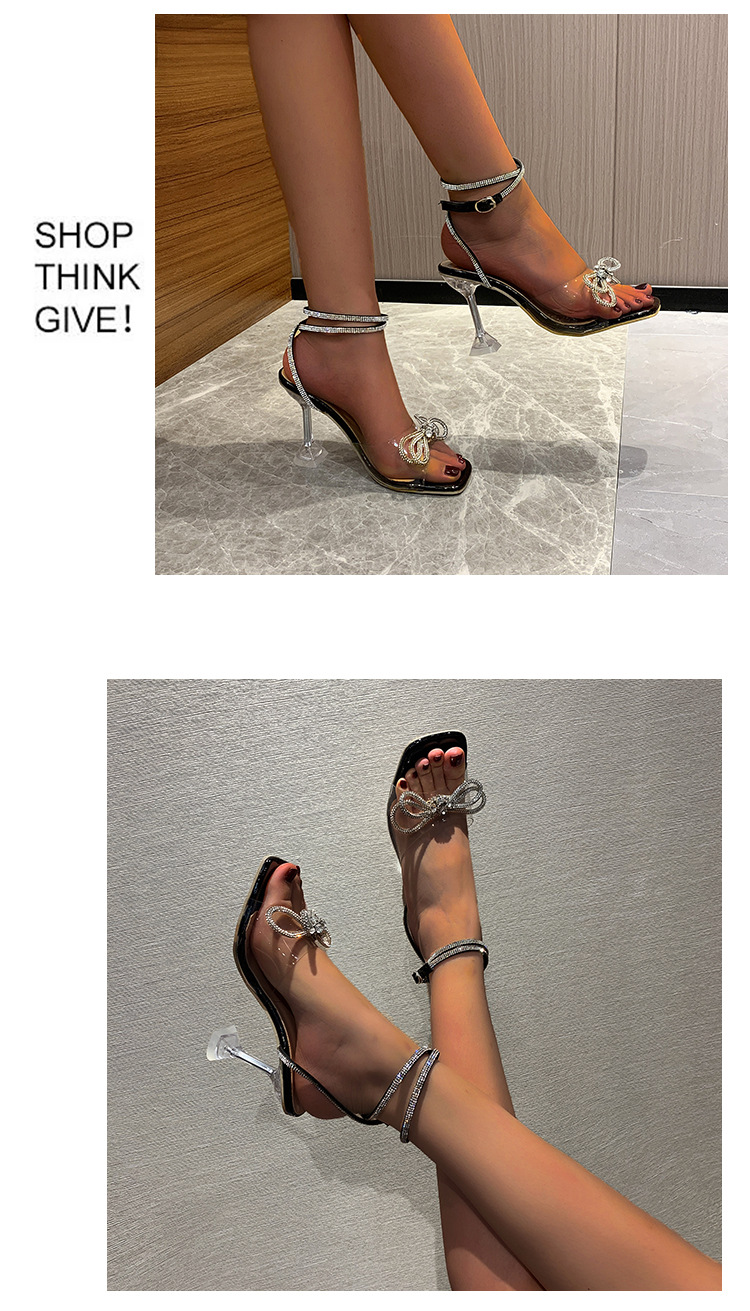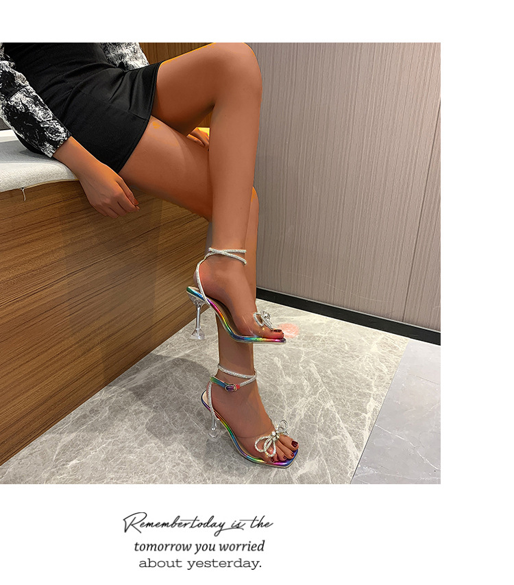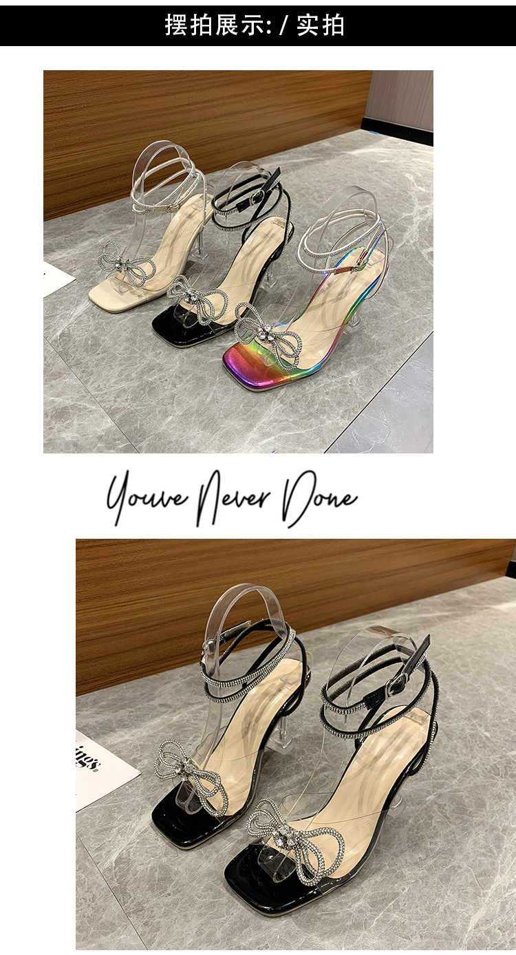欧米の対外貿易の蝶結びのドリルのハイヒールのサンダルの女性の越境する大きいサイズの方頭はショーのファッションの冷たいスリッパのheelsを歩きます。