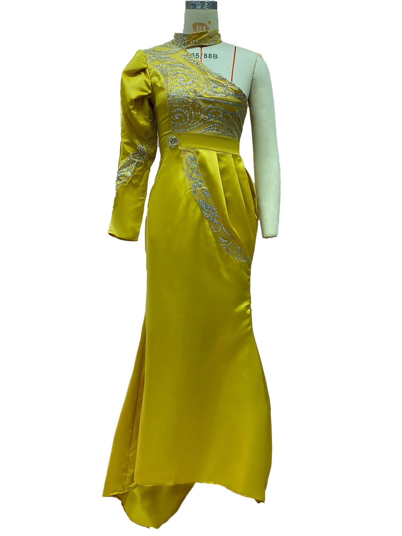2025 クロスボーダー新ゴールデンヘビービーズ高級イブニングドレスセクシーな社交界の女王ロングドレス LS7109