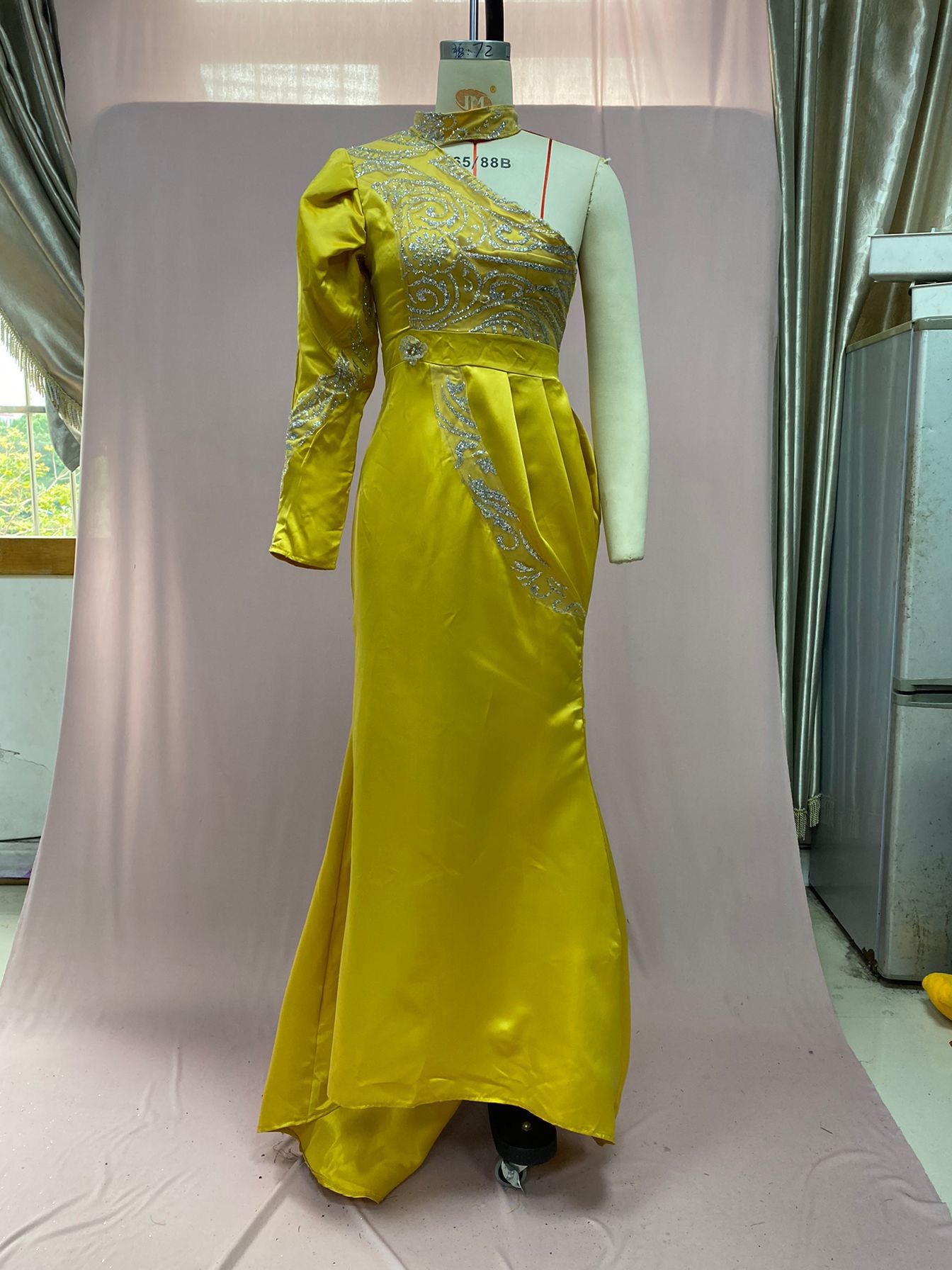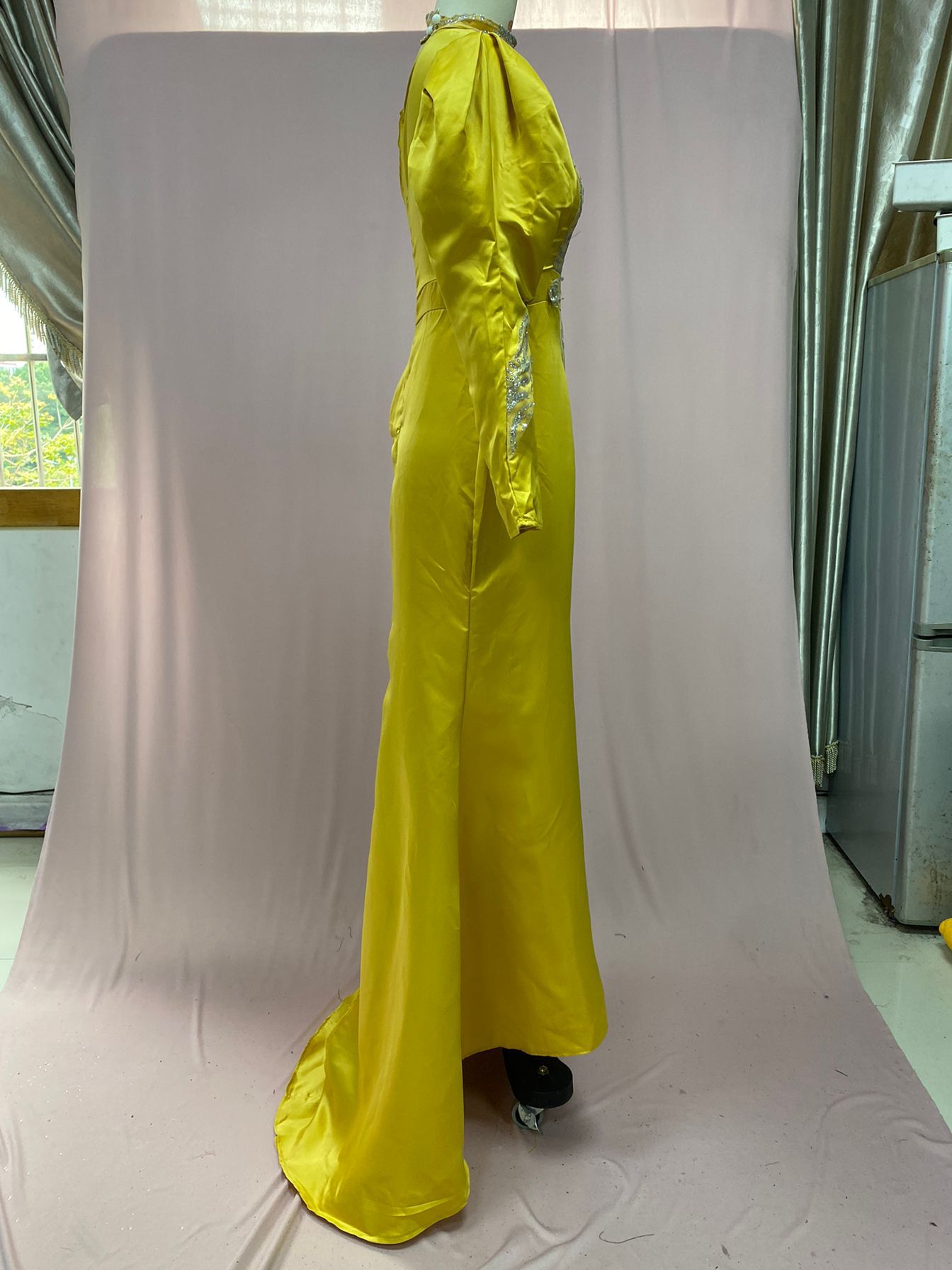 2025 ヨーロッパとアメリカの貿易新しいイブニングドレス ebay アマゾン女性のゴールドハイカラードレス宴会ドレス