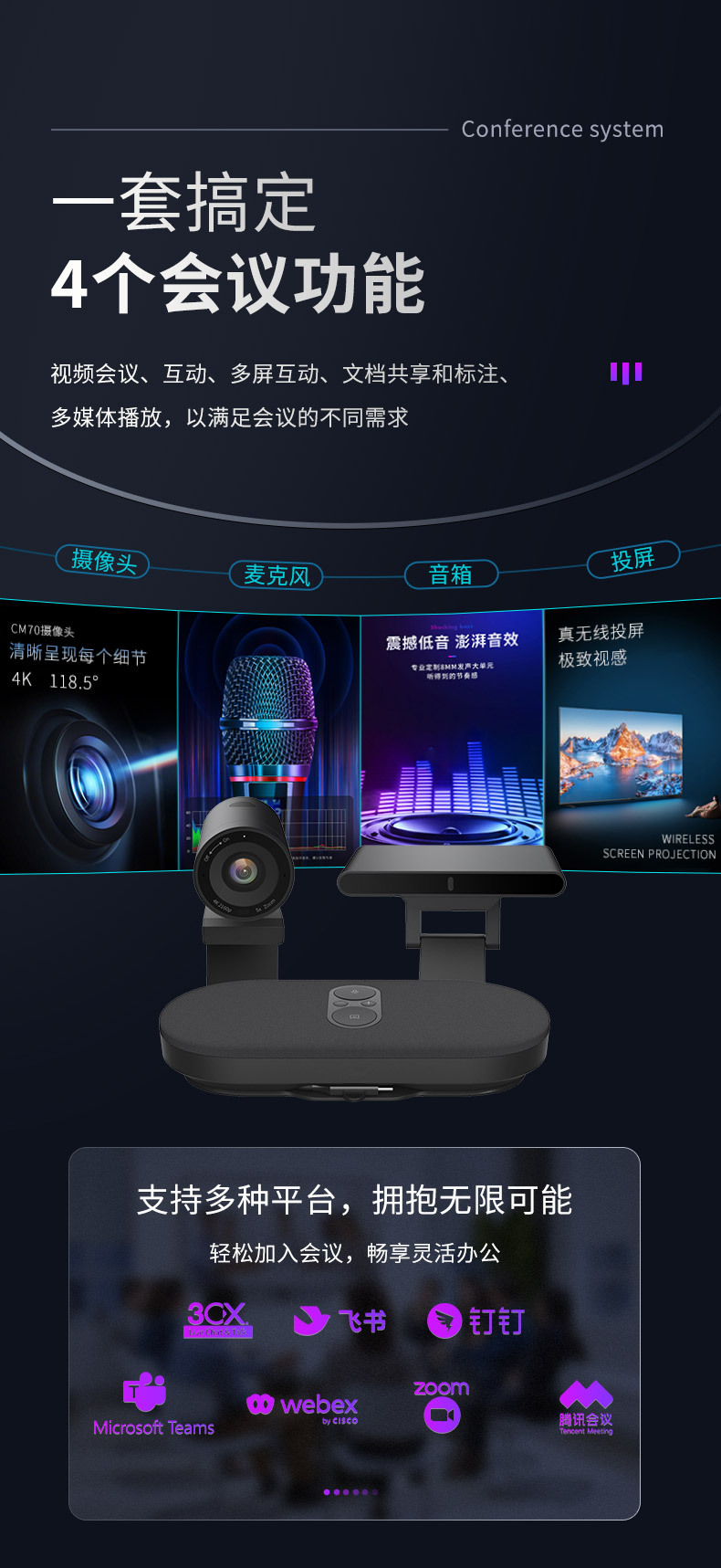 遠隔ビデオ会議システムセット4kハイビジョンカメラハイエンド無線スクリーンマイクビジネスオーディオ