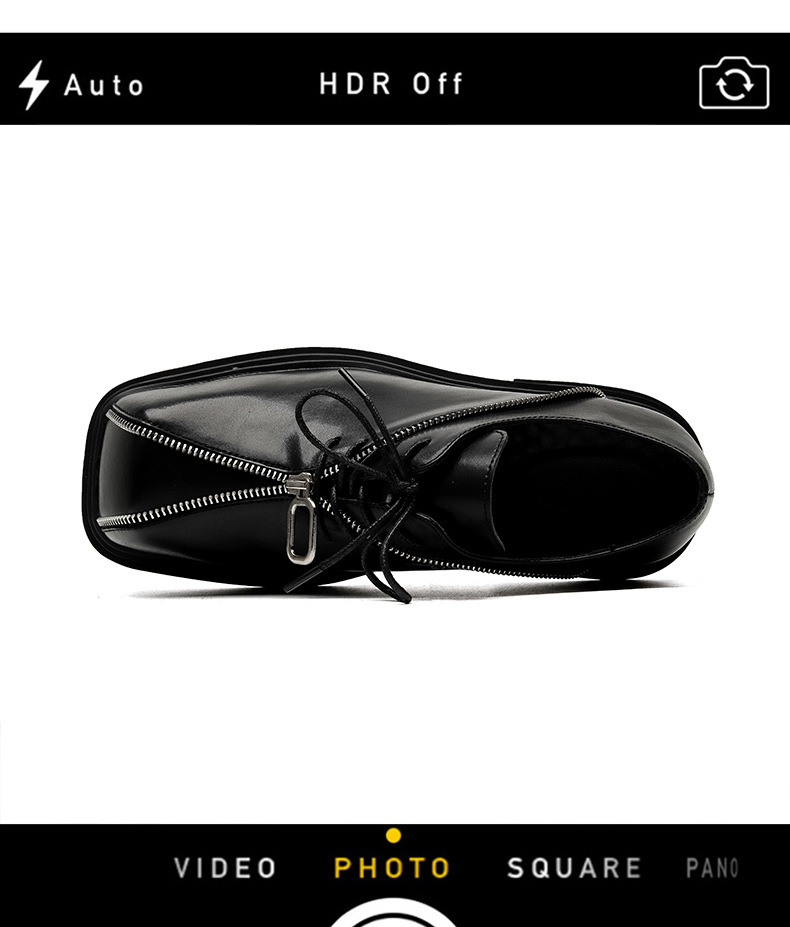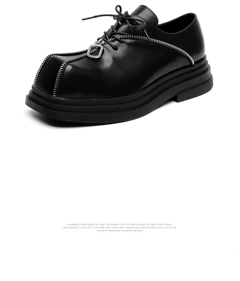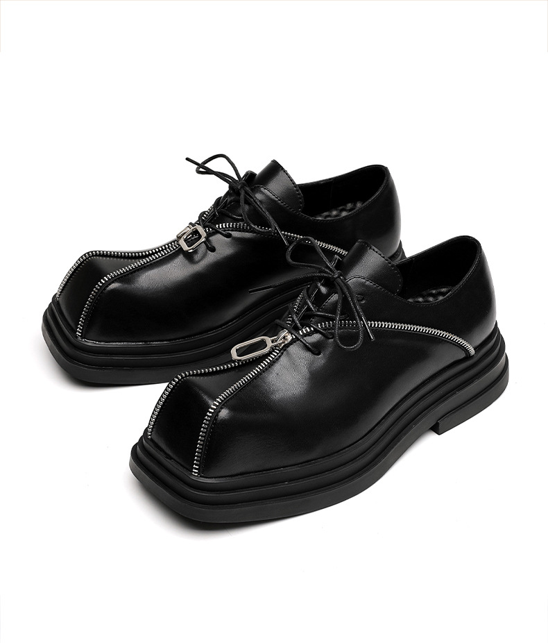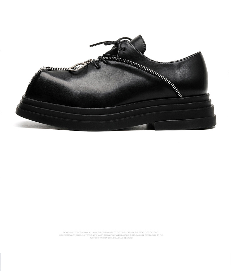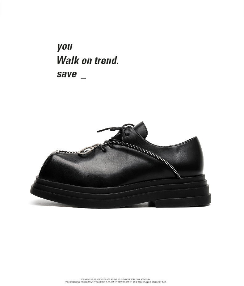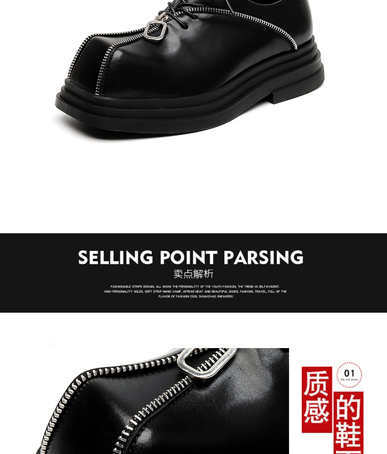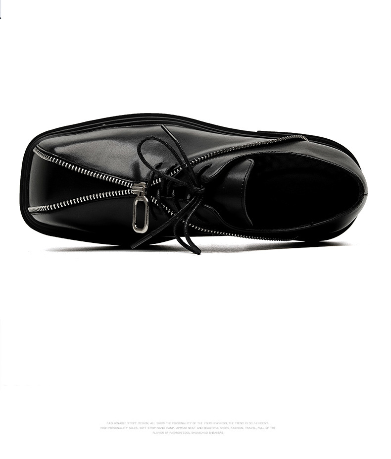 2024人の男性靴の厚い底の角の靴の男性の潮流の個性のパンクのファスナーの設計の湿っている黒色のビジネスの靴