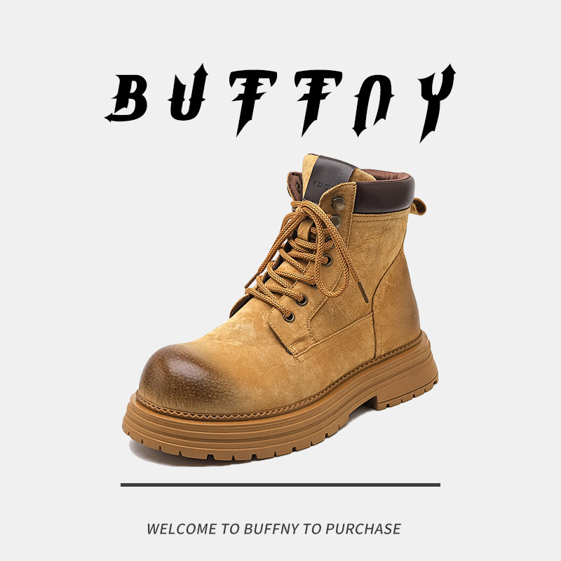 2025年秋 カップル向け万能ブリティッシュスタイル レトロワークブーツ 厚底身長アップ アウトドアハイキング マーティンブーツ 本革
