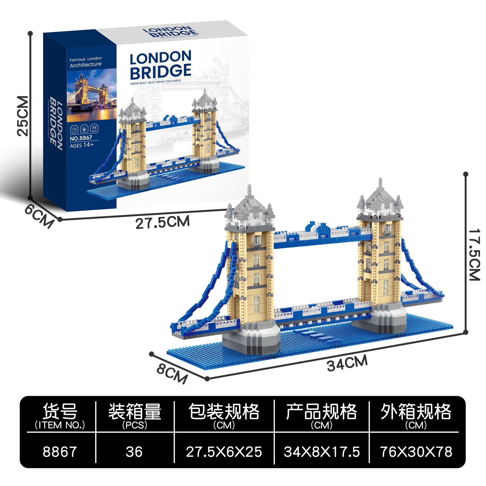 跨境外国著名建筑伦敦双子塔拼装模型积木桌面摆件益智烧脑高难度