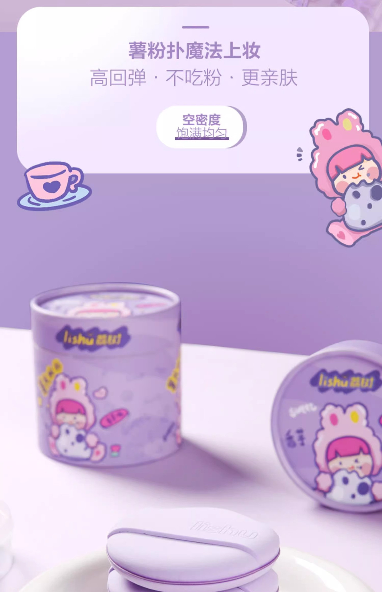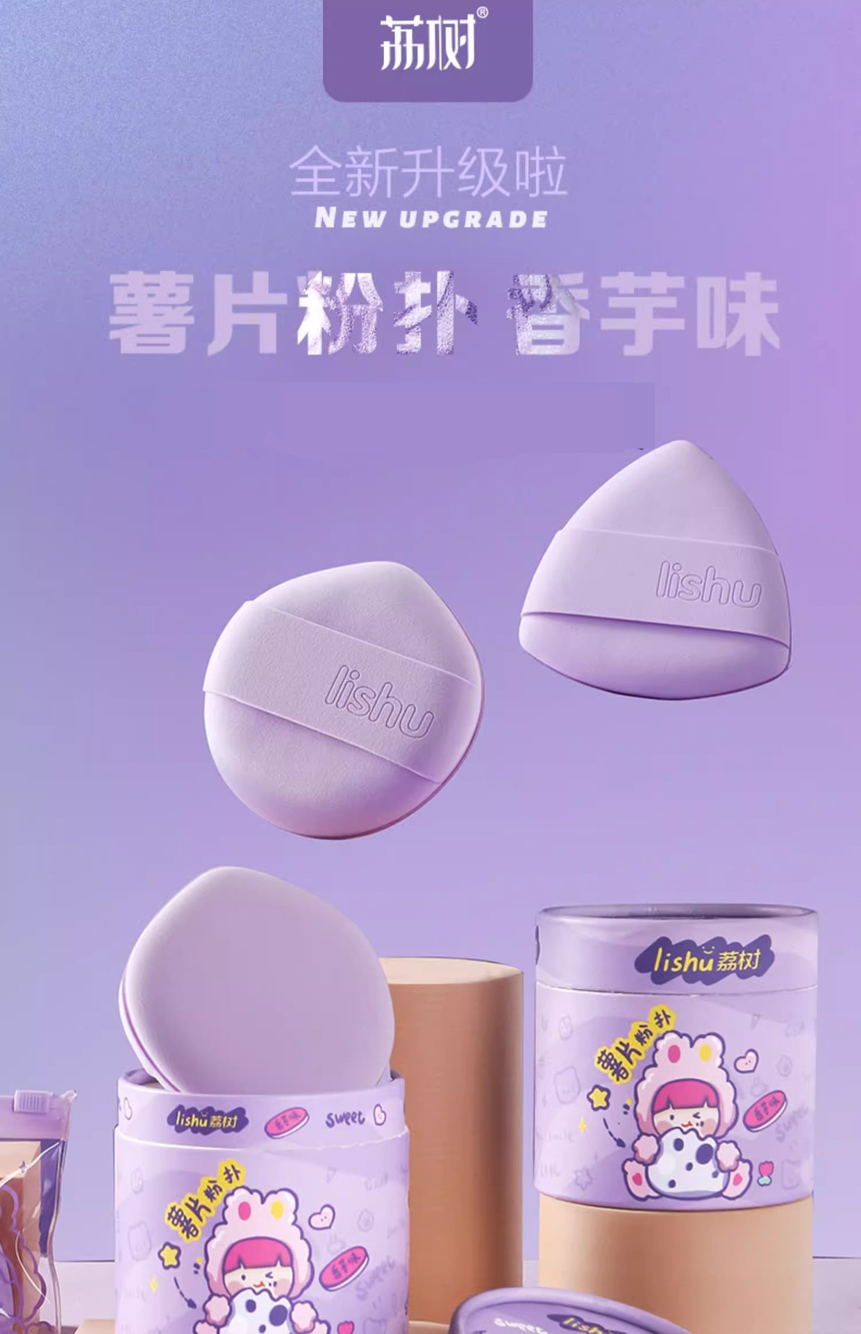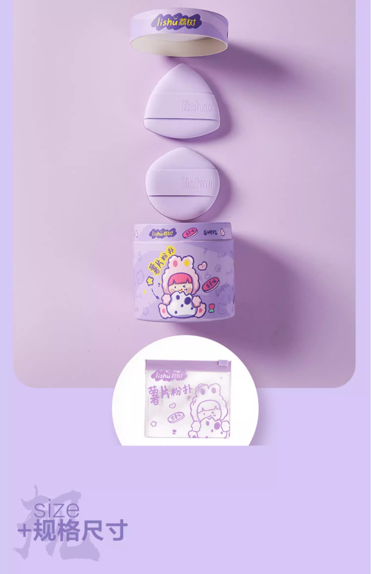 里樹ポテトチップスパウダーパフ、香芋味、エアクッション、超ソフト、粉液不要、専用両面乾湿両用、円弧三角形