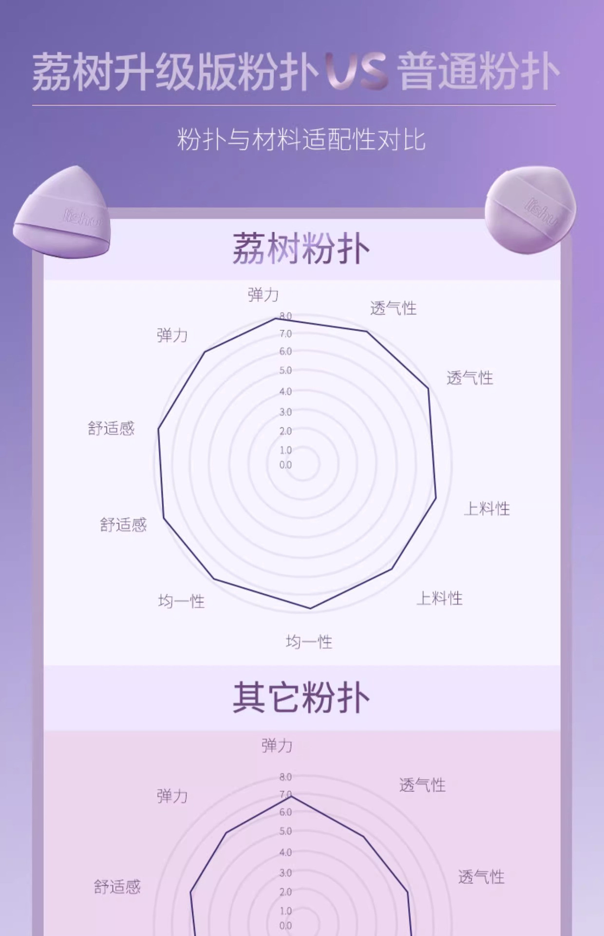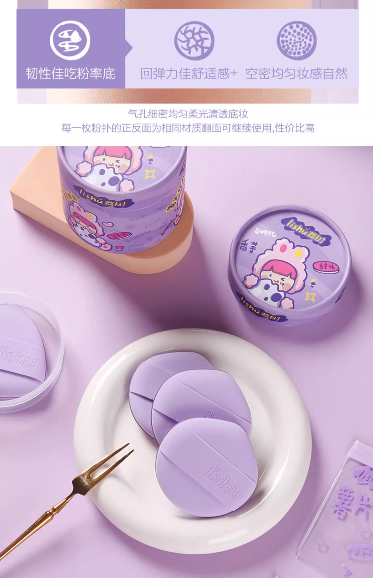 荔枝芋味パウダーパフ、超ソフト、粉液不要、専用両面乾湿両用マカロンカラー