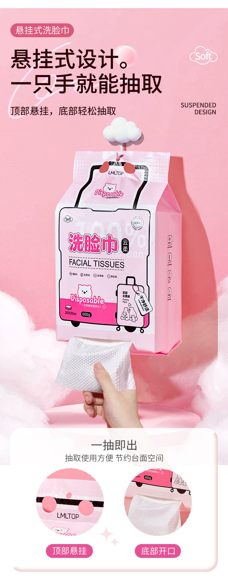 LMLTOP 壁掛け式使い捨て厚手コットンソフトタオル 美容院用メイク落とし・洗顔タオル SY421