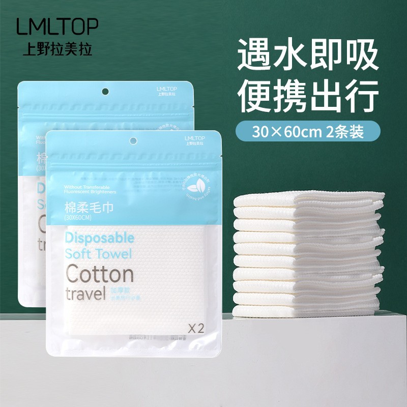 Lmltop使い捨て綿柔らかいタオル2枚入り旅行携帯プラスパール柄圧縮洗顔タオルsy425