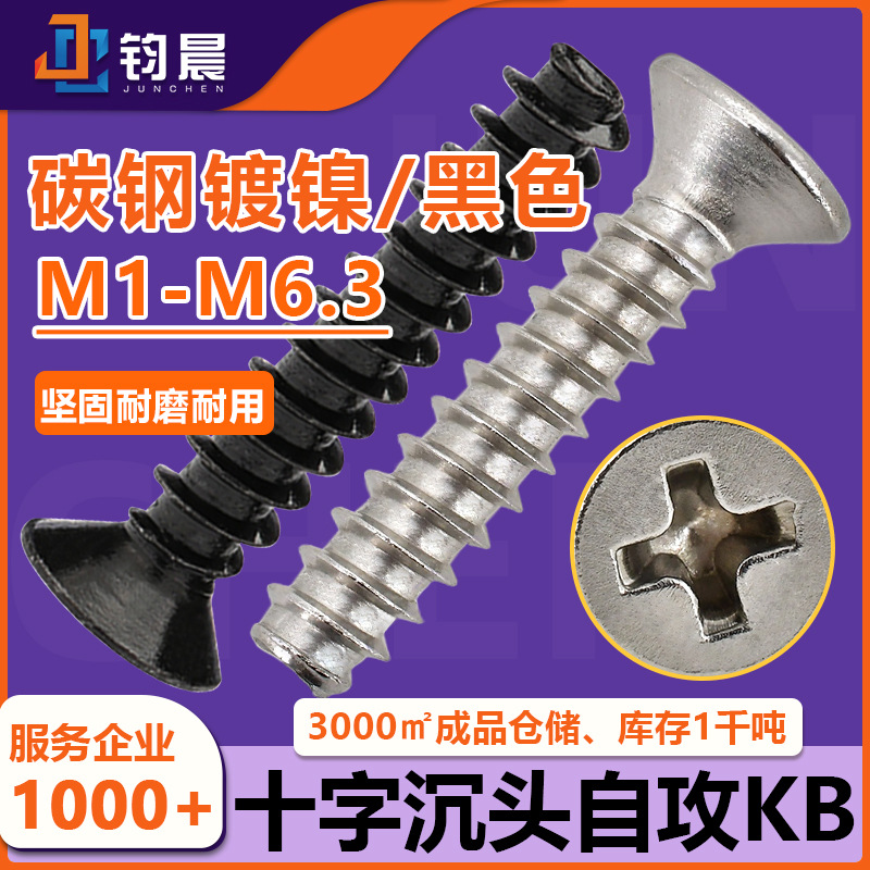 Kbニッケルメッキ十字沈頭平尾ねじm1鉄黒色十字溝タッピングスクリューファン電子小ねじ