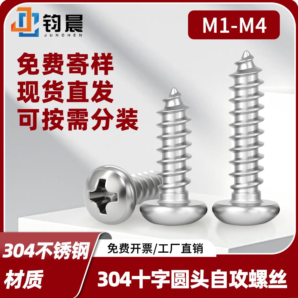 304ステンレス鋼十字丸頭セルフタッピングネジPA木工ネジM1-M4十字皿頭電子セルフタッピングネジ