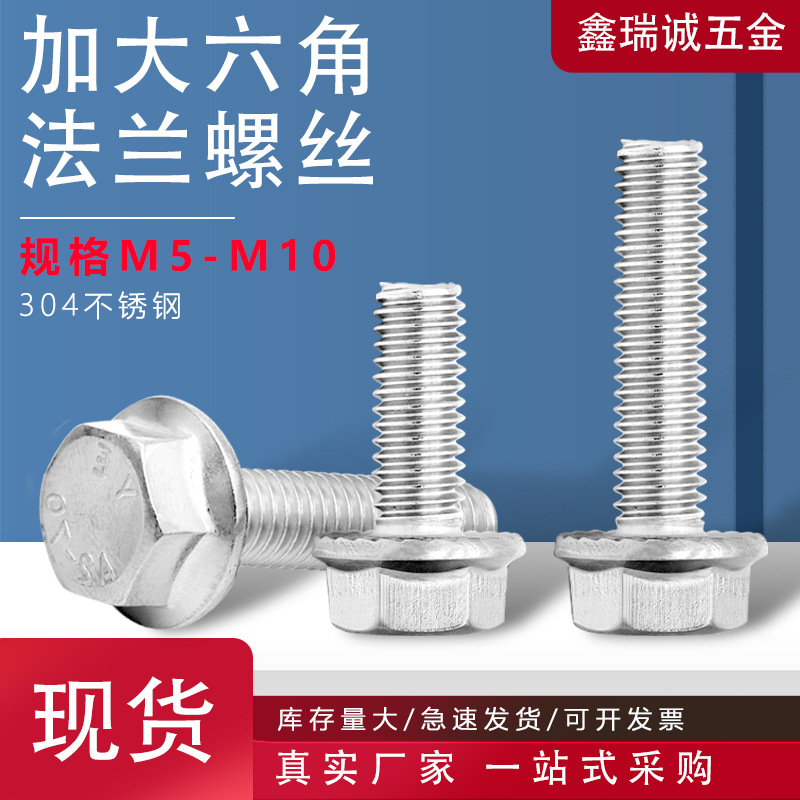 304ステンレス鋼六角ネジGB5789 大型外六角フランジネジ 平頭大型ボルトM5-M10