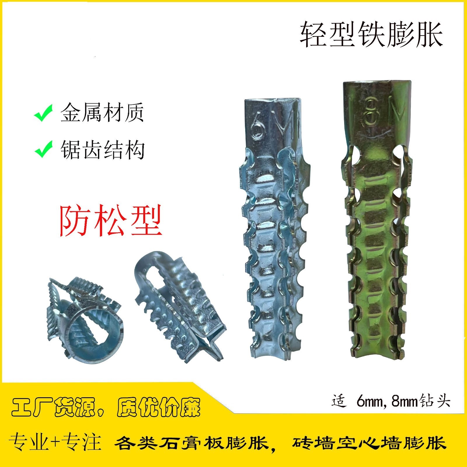 铁锯齿壁虎膨胀螺丝金属膨胀管钉防松水泥墙轻质砖空心砖自攻螺钉