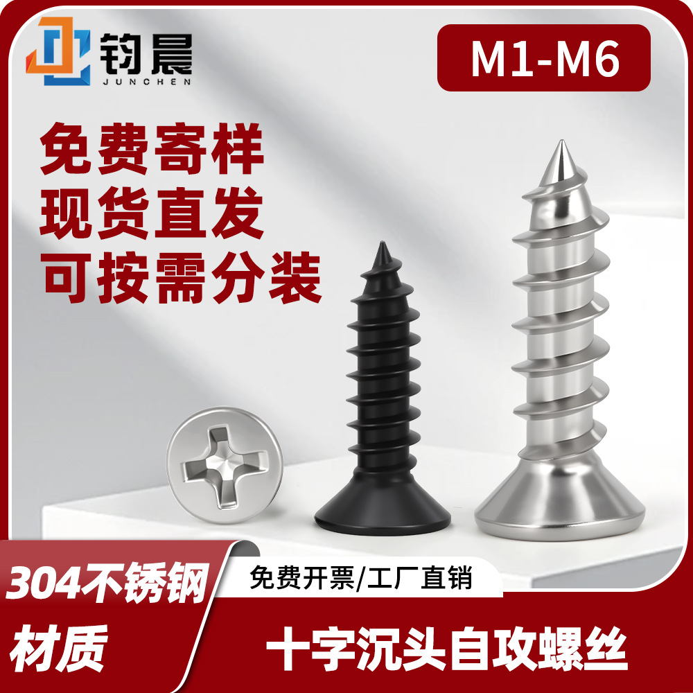 黒色304ステンレス鋼ネジ 十字穴付き皿頭タッピングネジ 平頭ネジ 木工ネジ M2-M6 卸売