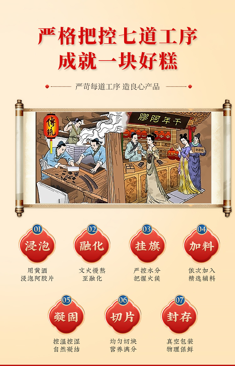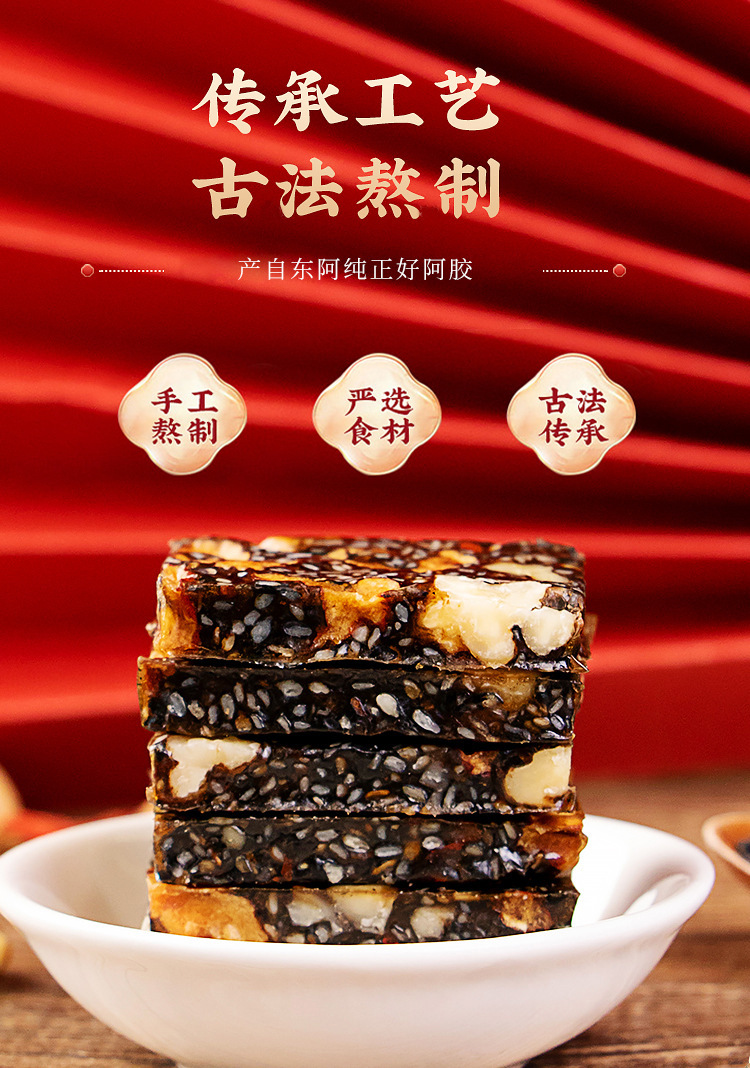 山東省東阿県のメーカーによる手作りの本格的な阿膠餅、卸売、すぐに食べられる真空パックの阿膠餅