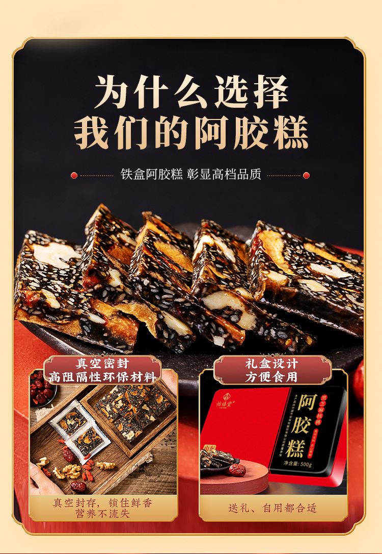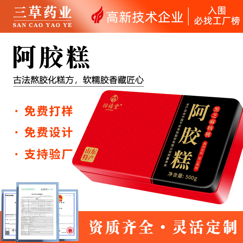 阿胶糕500克工厂批发定制东阿铁盒阿胶固元糕阿胶块代加工阿胶糕