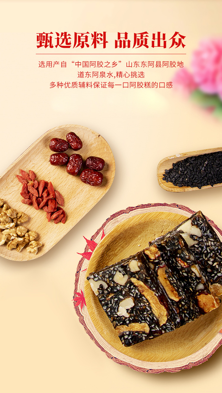 ロバ皮ゼラチンケーキ OEM カスタマイズ東阿特選ドロップシッピングソース工場 100 グラム黒ごまクルミロバ皮ゼラチンケーキ