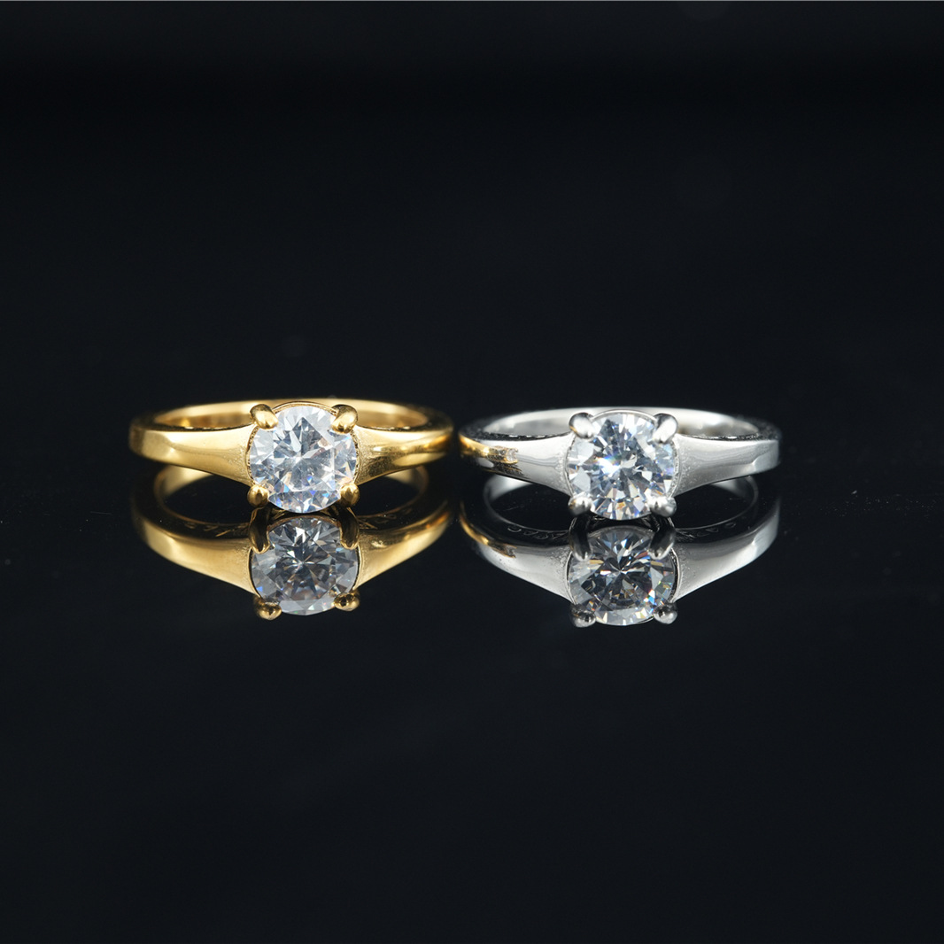 ファッション韓国版チタン鋼指輪女性莫桑石ドリルリング結婚結婚祝いアクセサリープロポーズプレゼントシンプルで優雅なアクセサリー