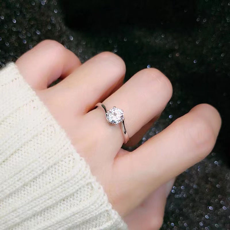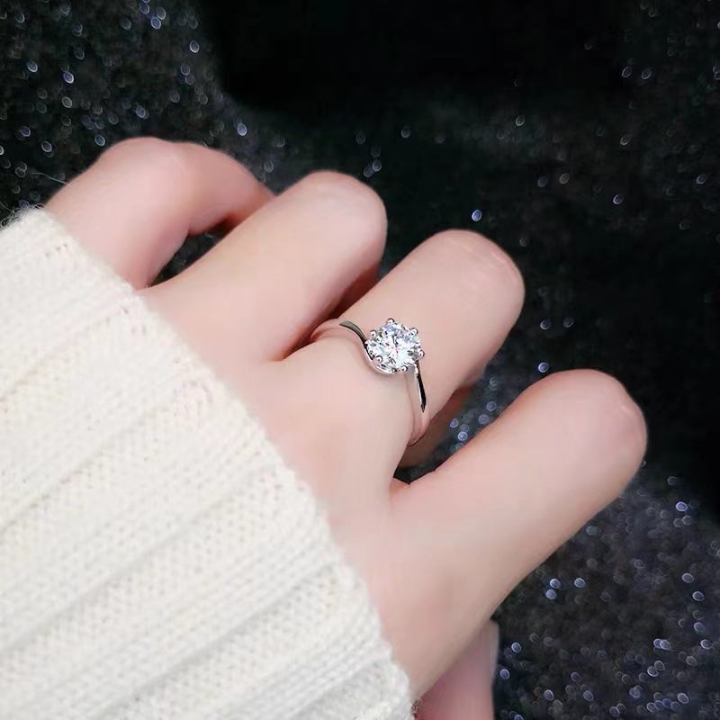 高端六爪仿真钻戒女简约时尚情侣款莫桑石求婚结婚开口戒指批发