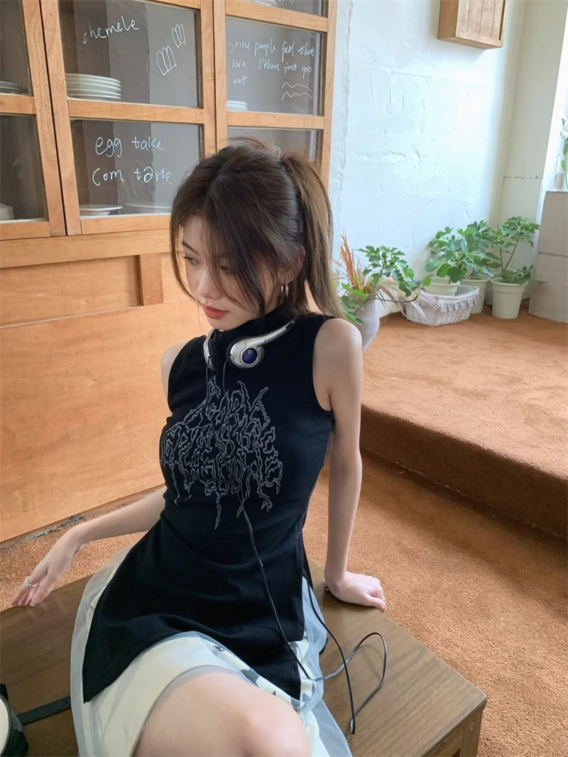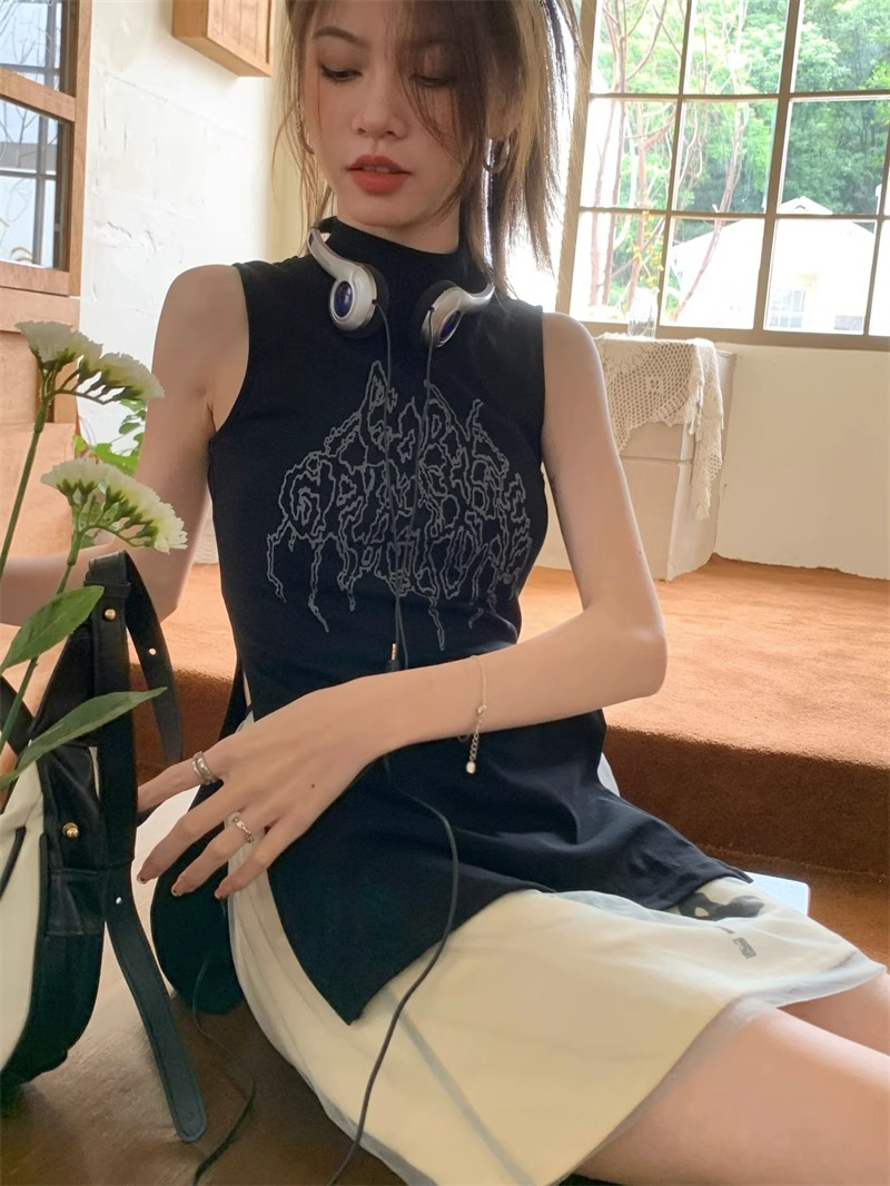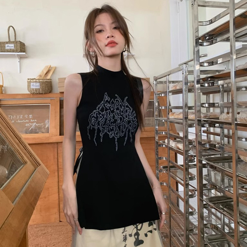 フランスの高級感ギャル風半高襟のベスト女性の夏の新作デザイン感があります。