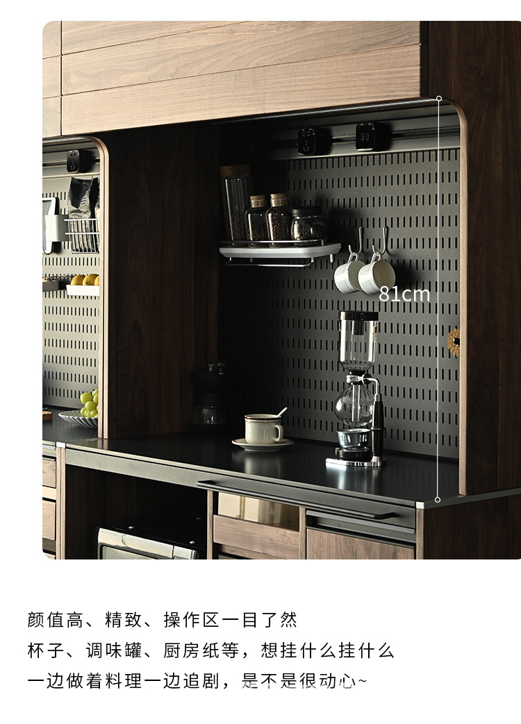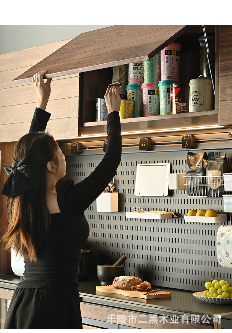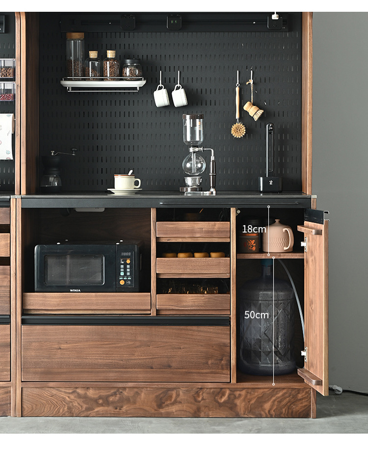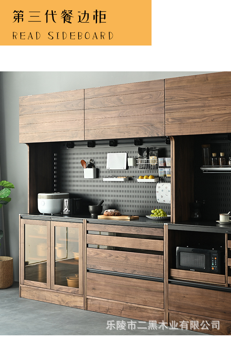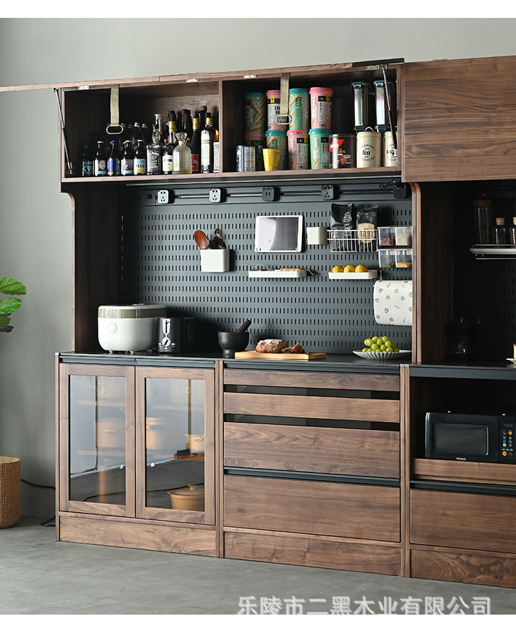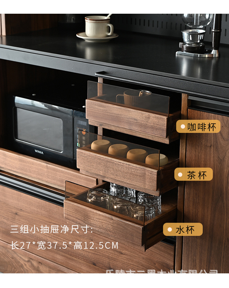 定食サイドキャビネット2世代実木岩板桜木一体高棚レストラン収納コーヒーキャビネット