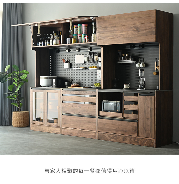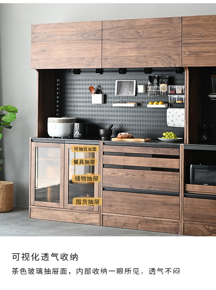 サイドキャビネット北欧岩板キャビネットロッカー全実木リビング一体壁展示キャビネット