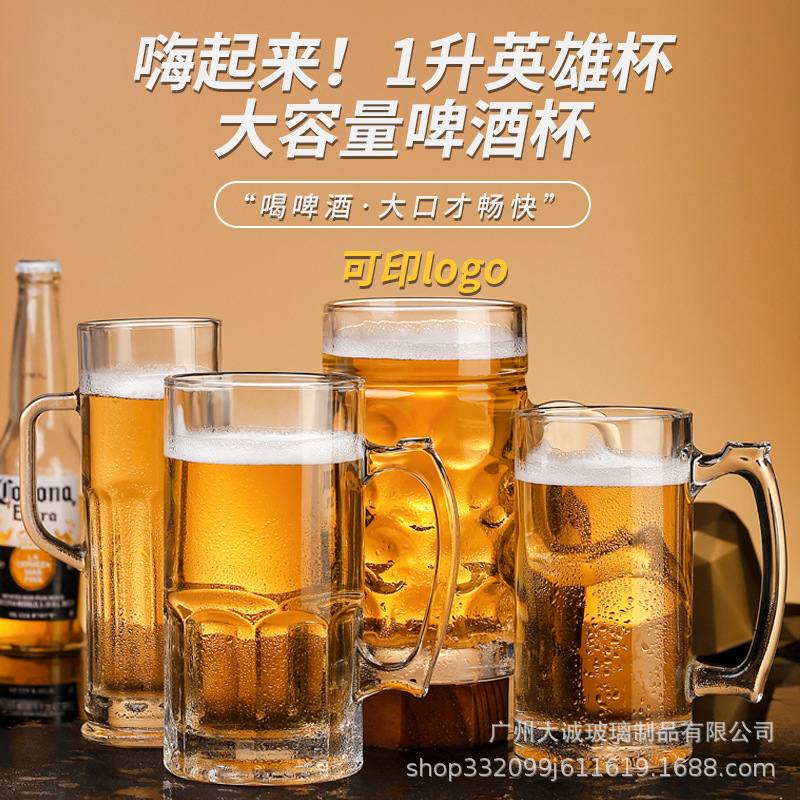 厚いビールカップガラスの超大容量ハンドル付き英雄カップミュンヘンビールカップの大サイズ1000ミリリットル