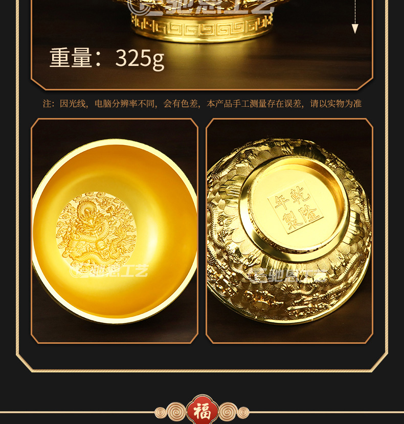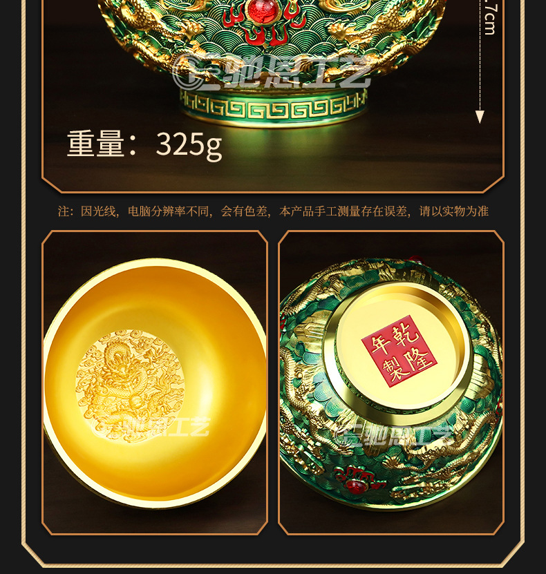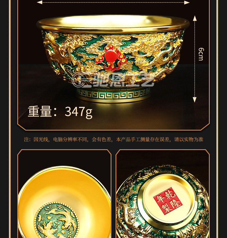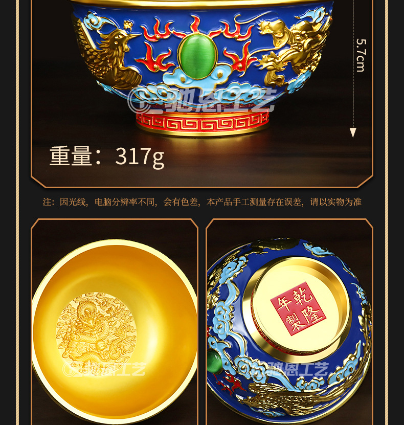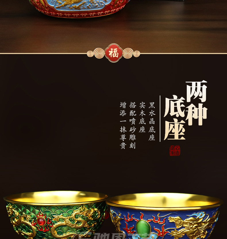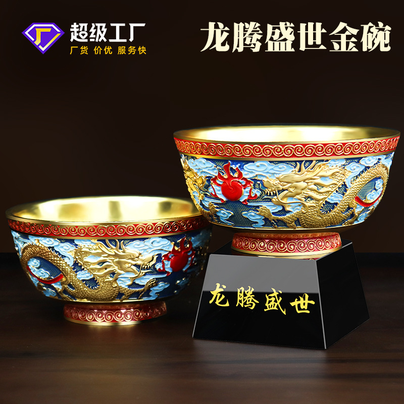 珐琅彩合金金碗摆件家居装饰婚庆礼品摆件龙腾盛世送福工艺品摆件