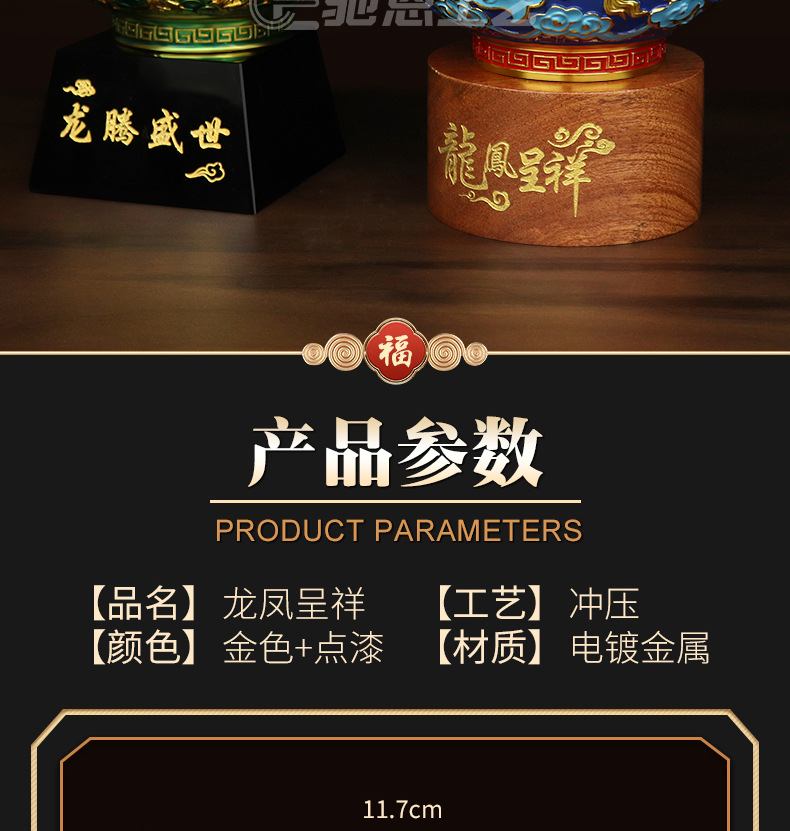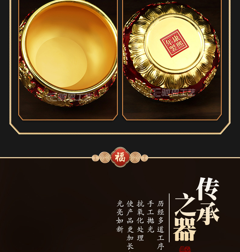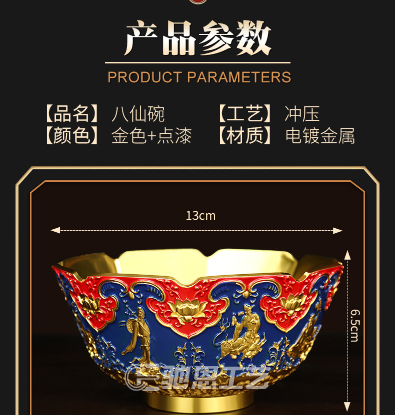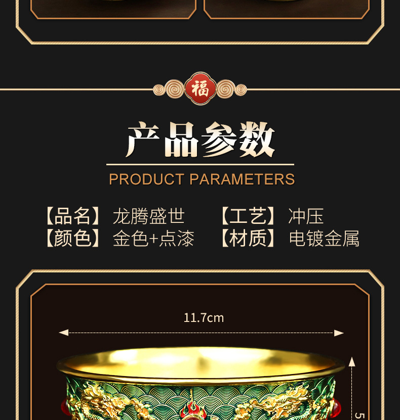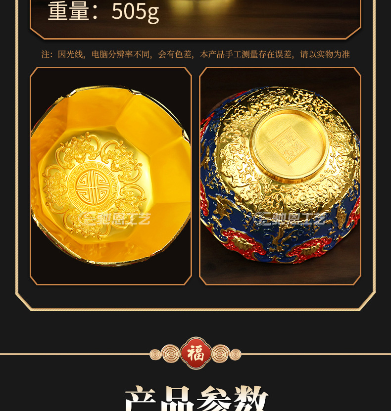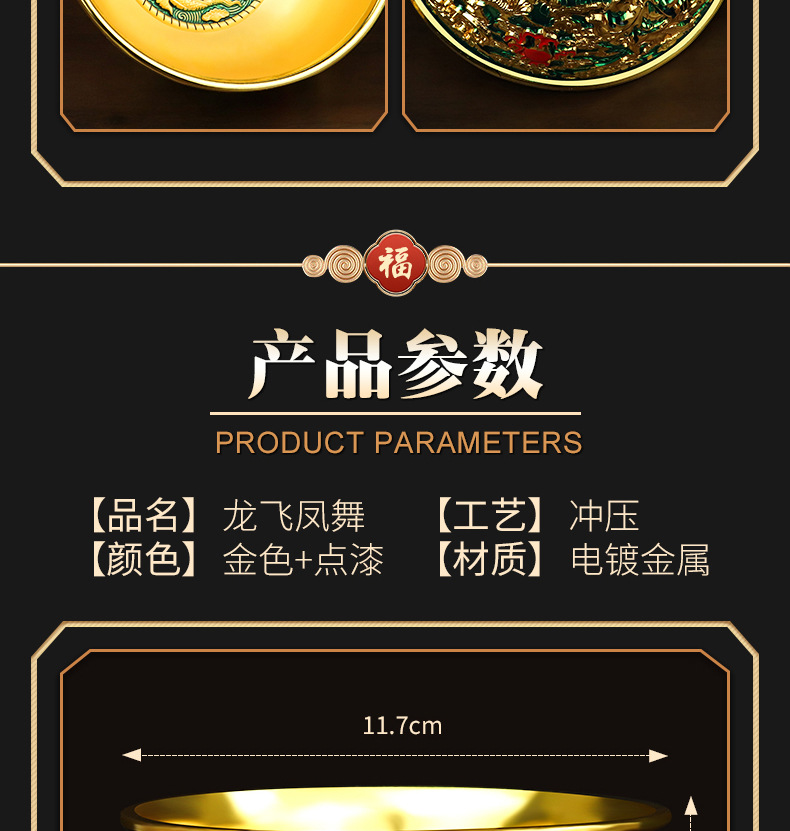 珐琅彩合金金碗摆件家居装饰婚庆礼品摆件龙腾盛世送福工艺品摆件