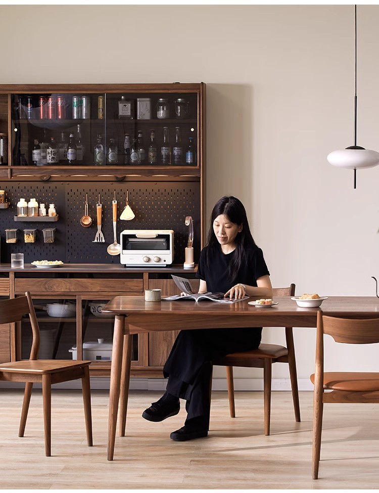 北米黒胡桃全実木食卓椅子家庭用北欧和式長方形家具大板机白蝋木テーブル