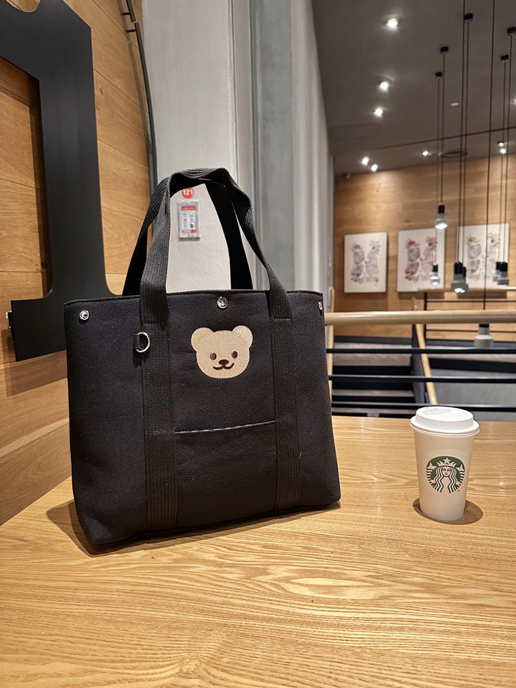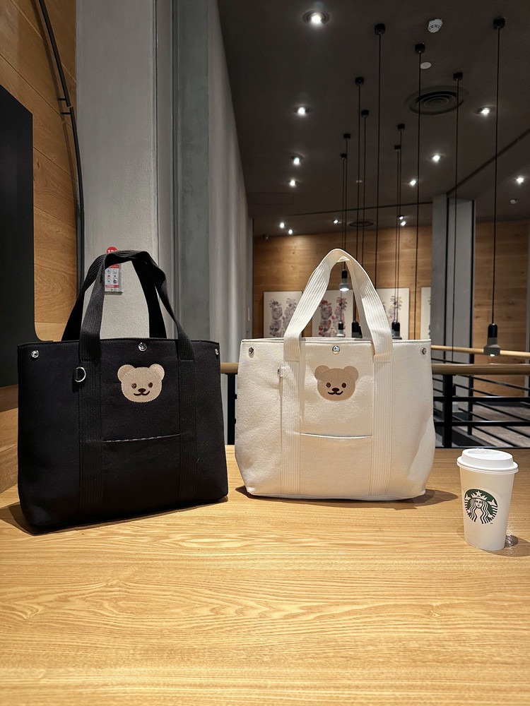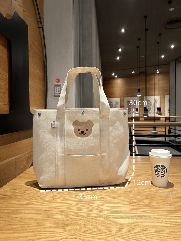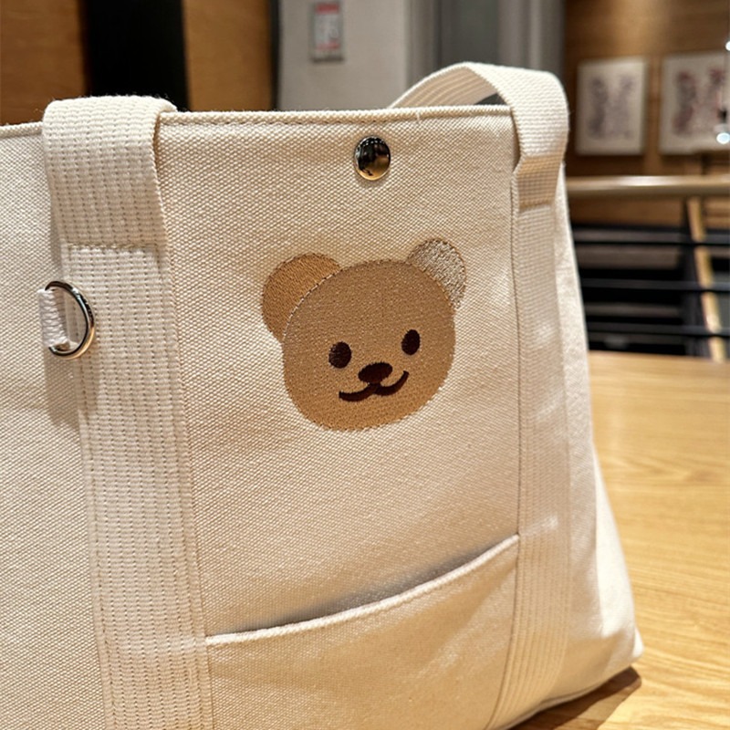インスタ映えするワンショルダーママバッグ、刺繍入りくまちゃんキャンバスハンドバッグ、大容量トートバッグ、ママと赤ちゃん用バッグ、収納バッグ、軽量