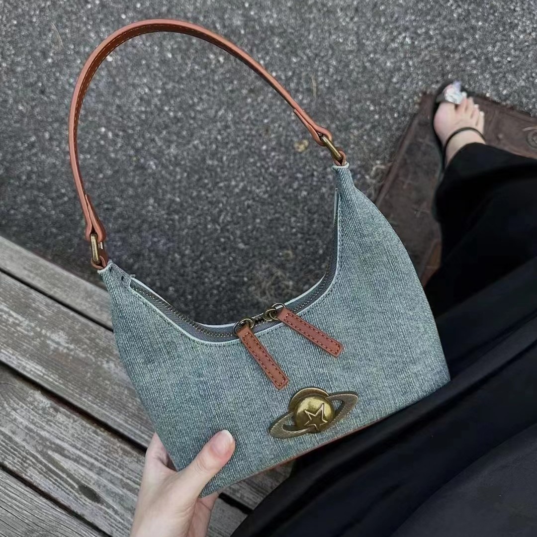 新型女性カバンデニム小衆衝突色脇下カバン女性高級感ファッションレトロワンショルダーバッグ通勤ハンドバッグ