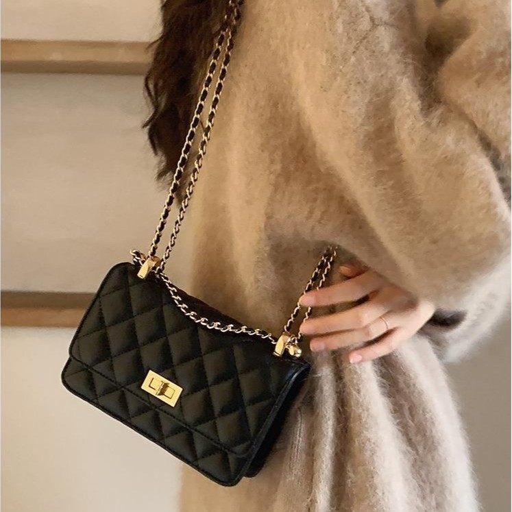 女性のカバン2025新型のシングル肩の小さい方の包みの小さい方の大衆のファッションの百合の高級な質感の菱格のチェーンは斜めにシングル肩を掛けます。