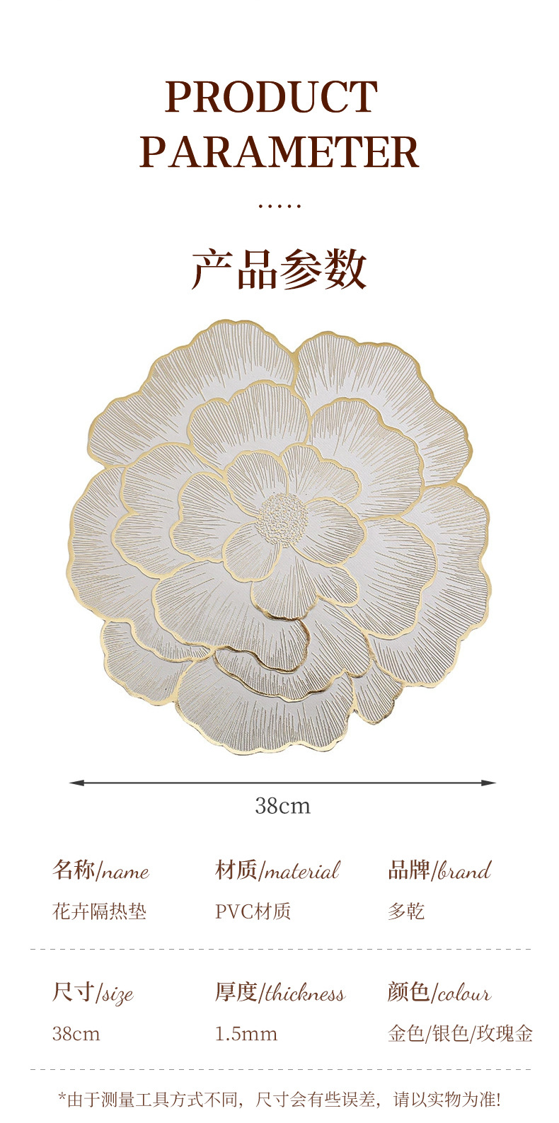 クリエイティブ牡丹花北欧風装飾箔押し家庭コースターPVCテーブルマット断熱滑り止め防水パーママット
