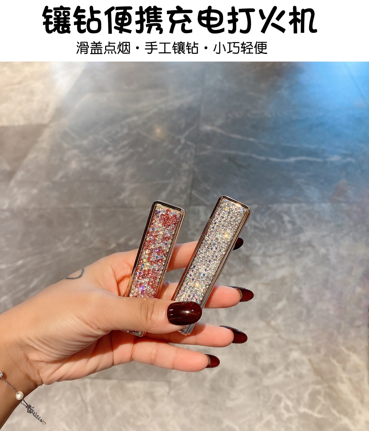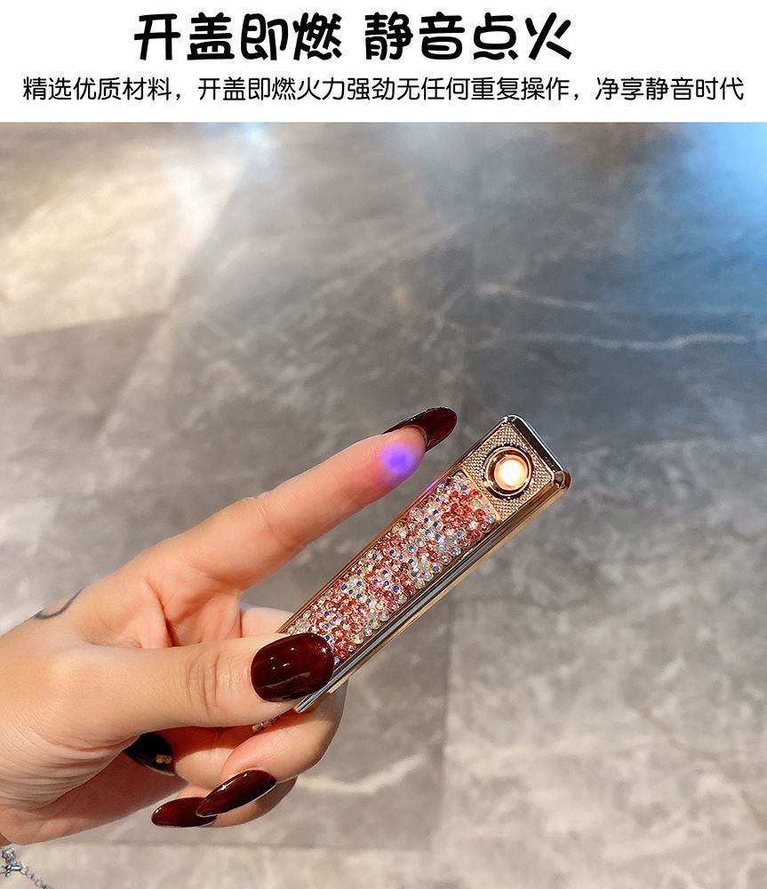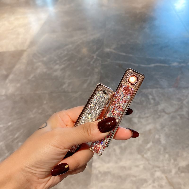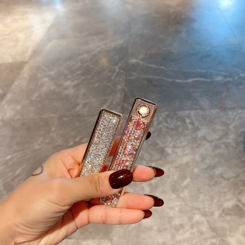 豪華なダイヤモンドのネットの赤いライターのアイデアの個性の防風usb充電器の静かで小さい携帯の贈り物