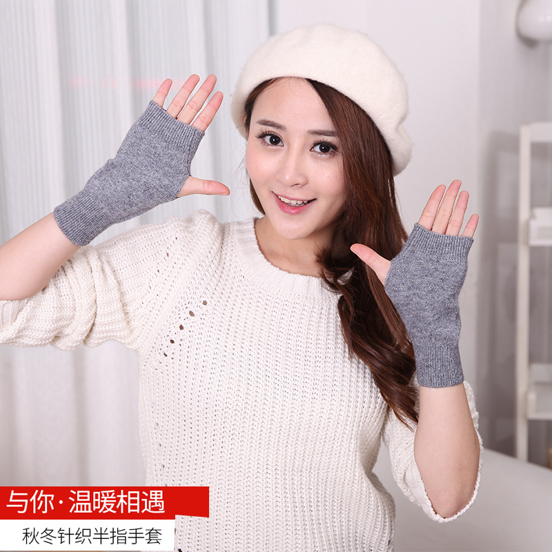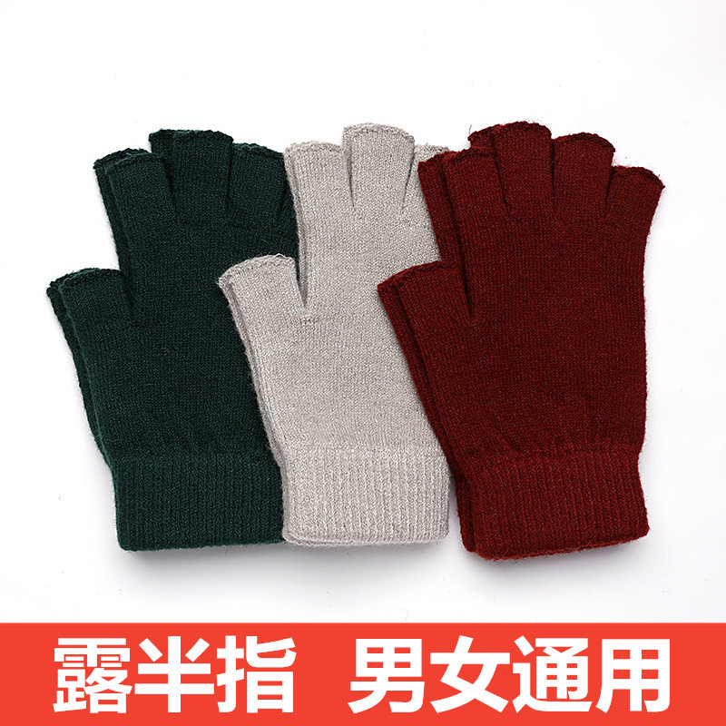カシミヤの半分の指の手袋の女性の秋冬のカップルは羊の毛糸の露指の男性の手袋を分けて自転車に乗ってタイプしてニットを打って保温します。