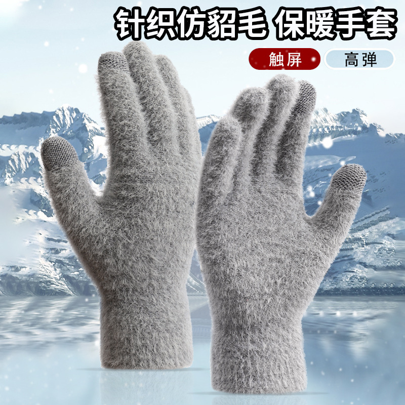 ミンクの毛の手袋をまねて、男女の秋冬の騎乗とベルベットの厚い指の5本の携帯電話の保温防風と寒さの自転車のタッチパネルを指します。