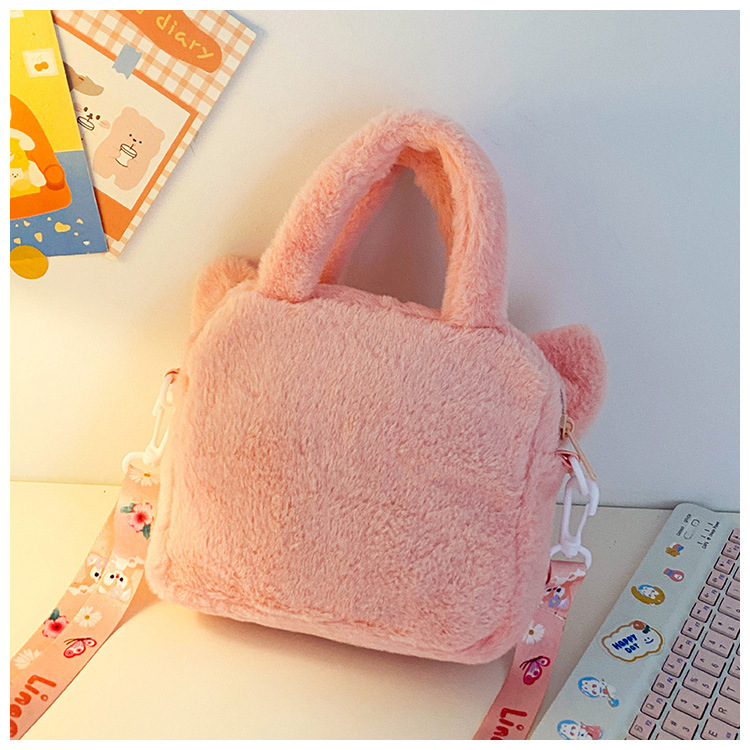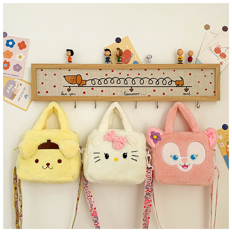 毛皮のようなハンドヘルドスクエアバッグ漫画の女の子のクロスボディバッグ 2025 外国風多用途かわいい女の子のショルダーバッグ