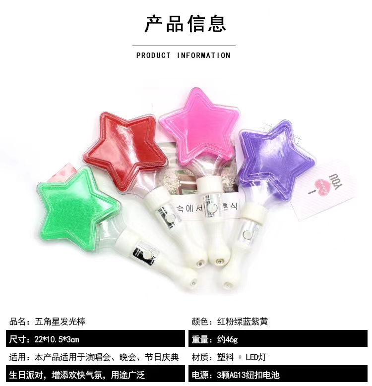Led蛍光棒五角星キラキラ棒雰囲気応援道具コンサート応援光る愛棒卸売り
