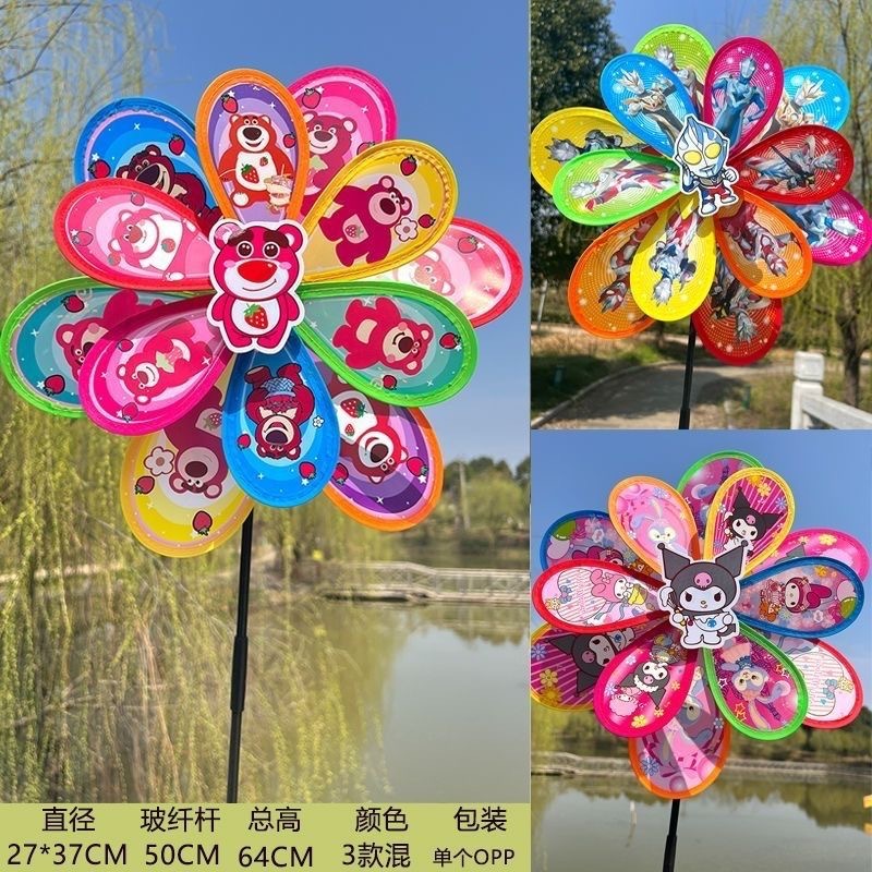 古い北京風車の大型二重回転手持ちポール風車児童玩具観光地区公園装飾露店卸売り