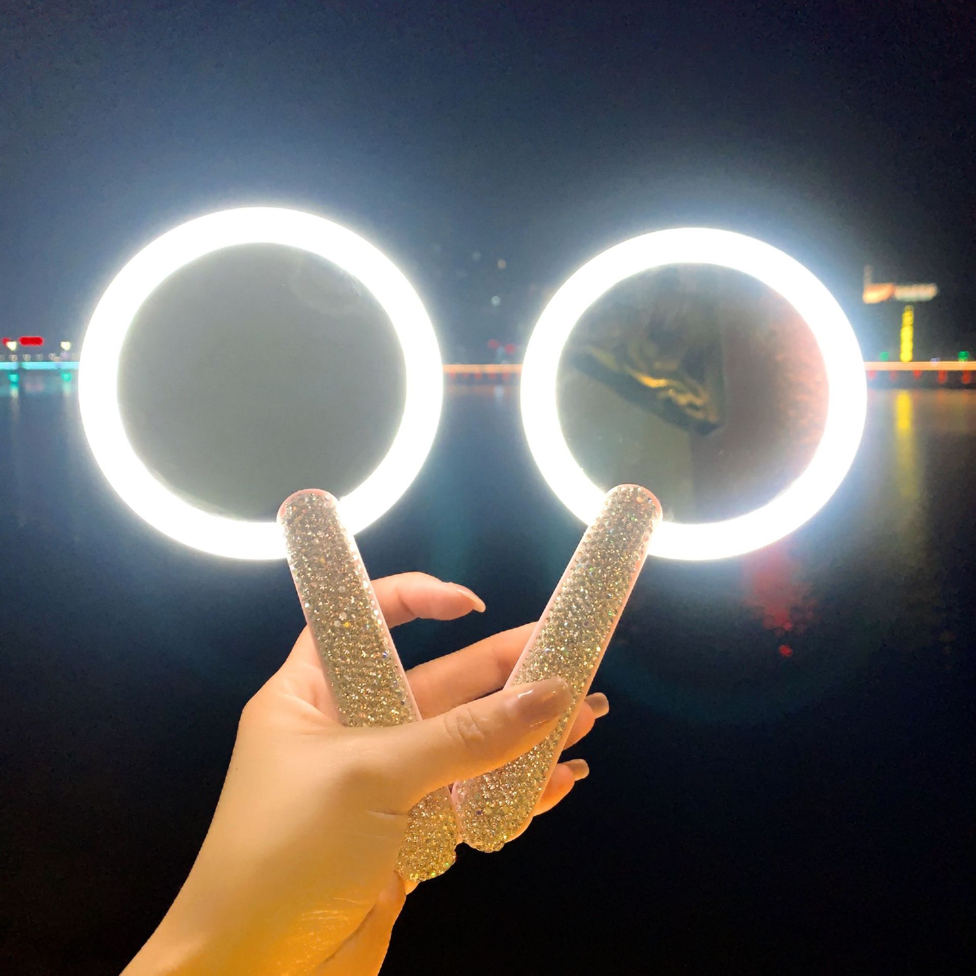 携帯型led補光化粧鏡学生寮の高颜値にドリル化粧鏡を入れて折り畳み充電鏡を持っている