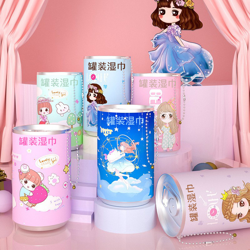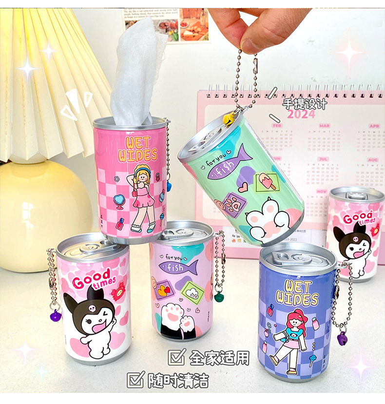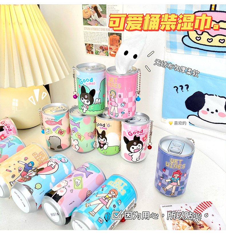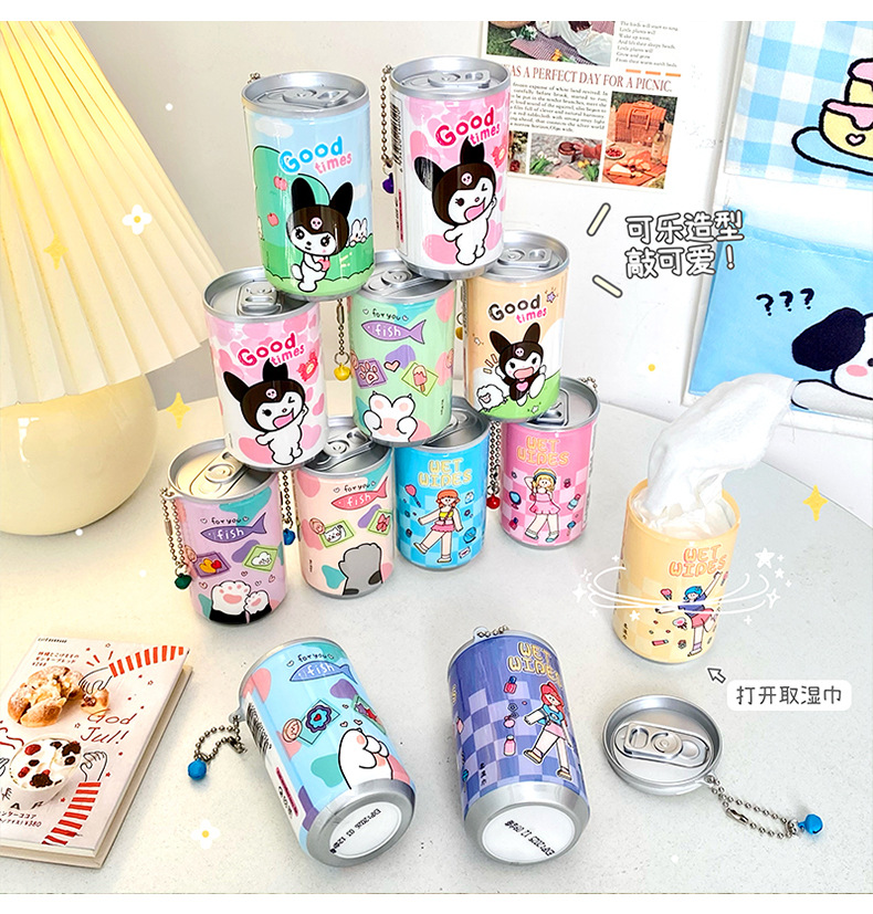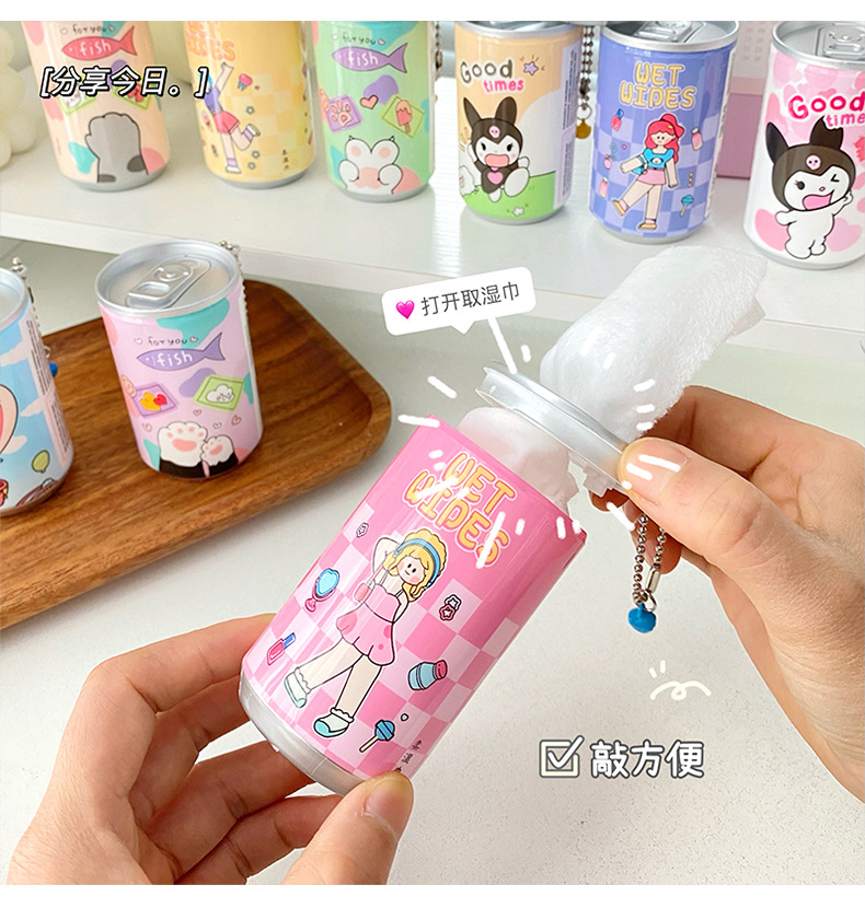 学生のかわいいアイデアミニおもちゃはコーラ缶のウェットティッシュを持ち歩いています。