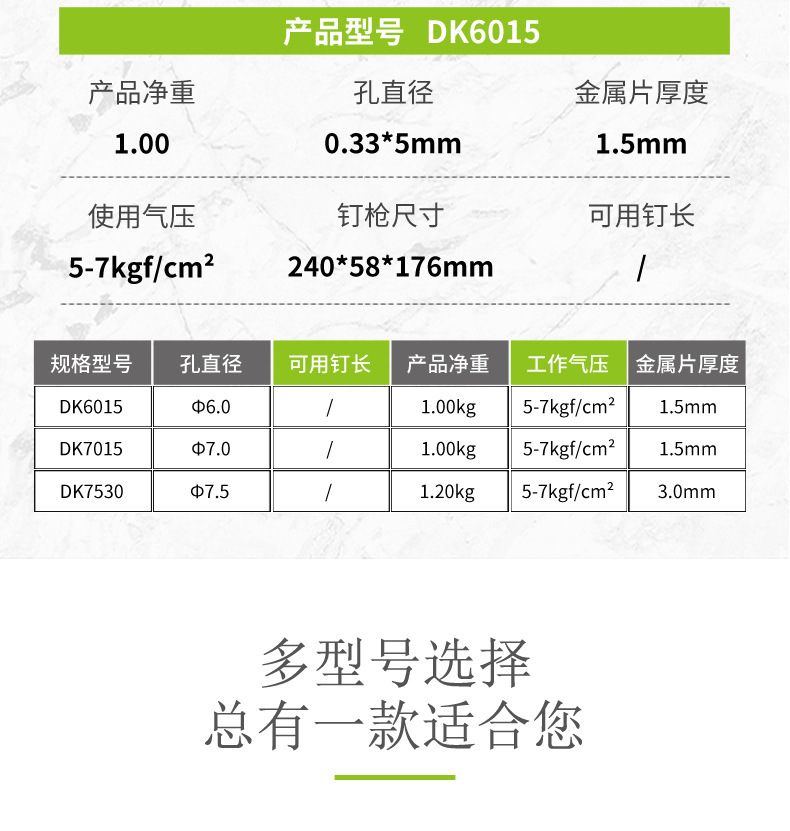 型番 Dk6015パンチガン,Dk7015パンチガン,Dk7530パンチガン