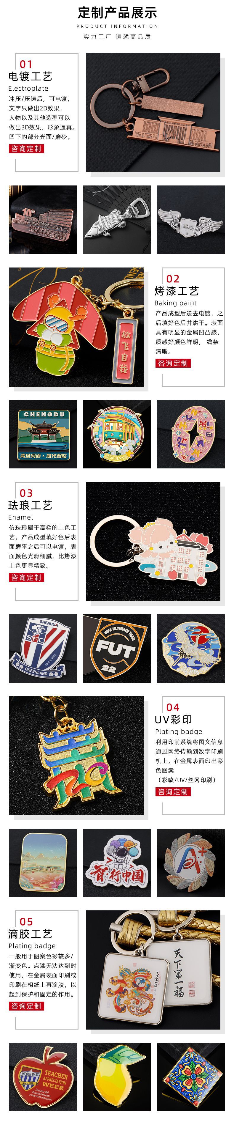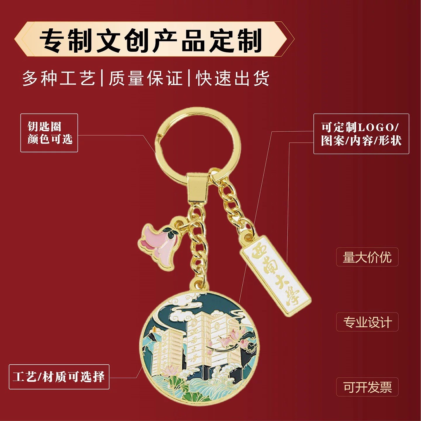 金属钥匙扣定 制锌合金烤漆珐琅学校文创个性钥匙扣挂件订 做