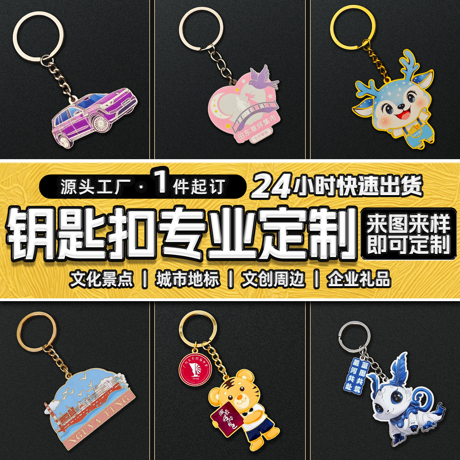 钥匙扣定制金属烤漆珐琅卡通钥匙挂件学校企业logo纪念钥匙圈定做