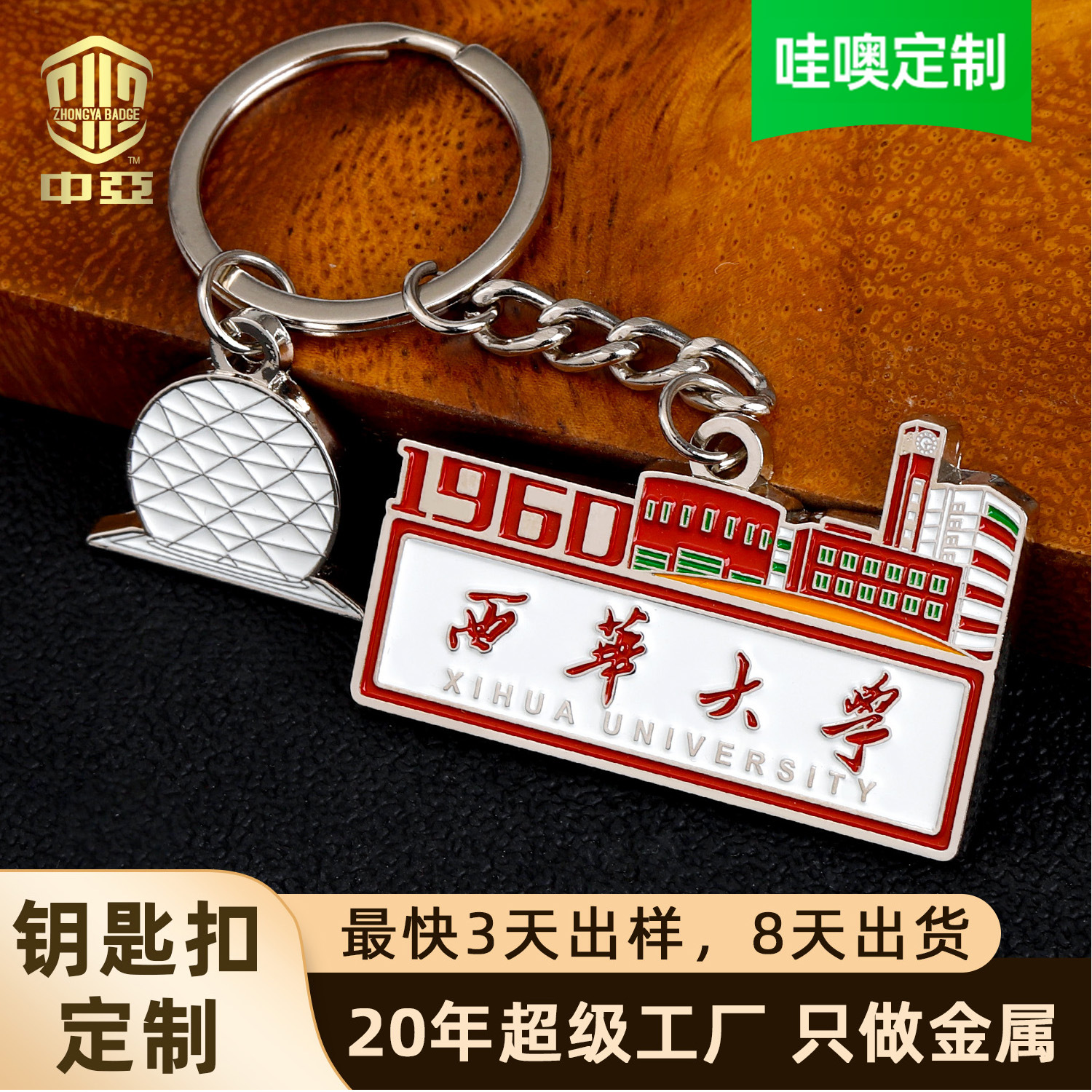 西華大学金属キーホルダー カスタム亜鉛合金エナメルキーホルダー 学校文化創意周辺グッズ ハンギングデコレーションギフト
